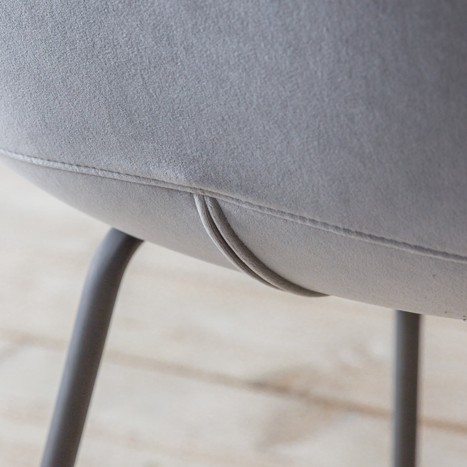 This dining chair offers simple, contemporary design, with its sleek seat and metal base. The subtle light grey velvet pairs perfectly with the chrome finish of the base to give a chic sophisticated look. Available in four other colours, and there are also bar stools in three colours.