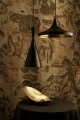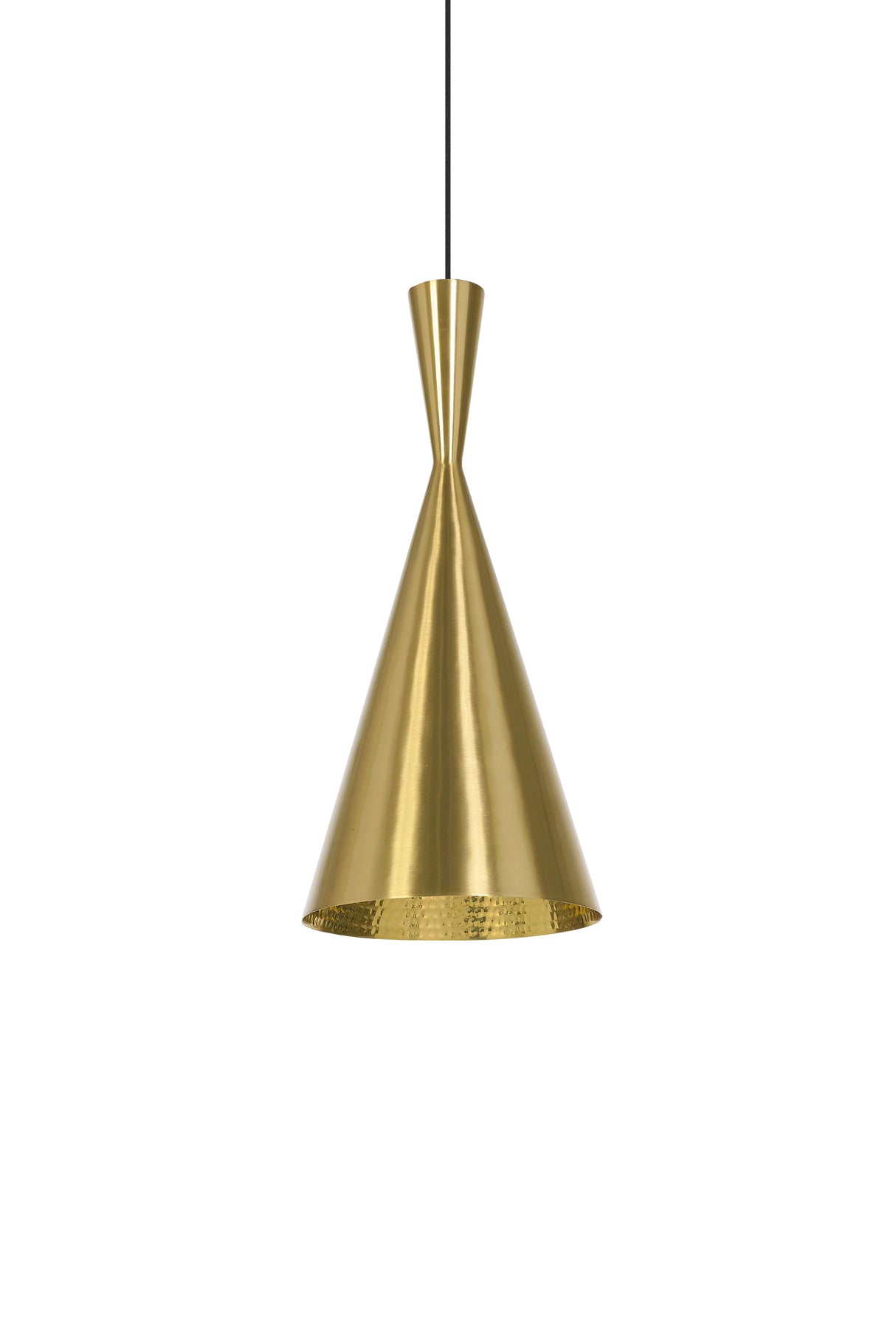 Bearing the mark of its maker, Beat is a celebration of the handmade. Inspired by the sculptural simplicity of traditional Indian water vessels, Beat is a family of handspun, welded and beaten lights with shades that retain hammer marks from their forming. Crafted by artisans in Northern India, the creation of Beat is part of an ancient process that takes four days to complete. The beaten interior is re-purposed to refract and reflect a soft and warm luminosity.