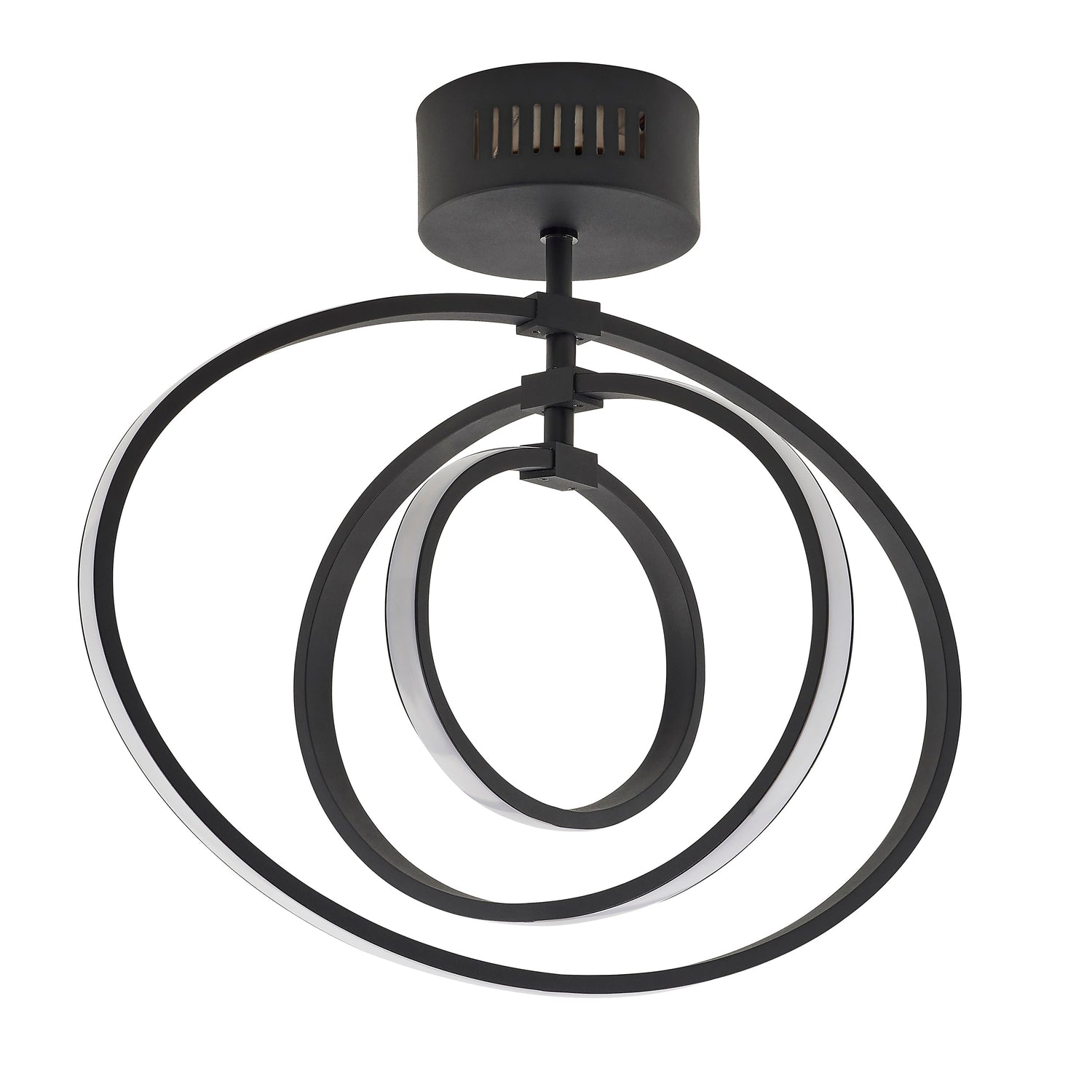 A modern, eye-catching sculptural LED hoop semi flush with monochrome black and white finish,