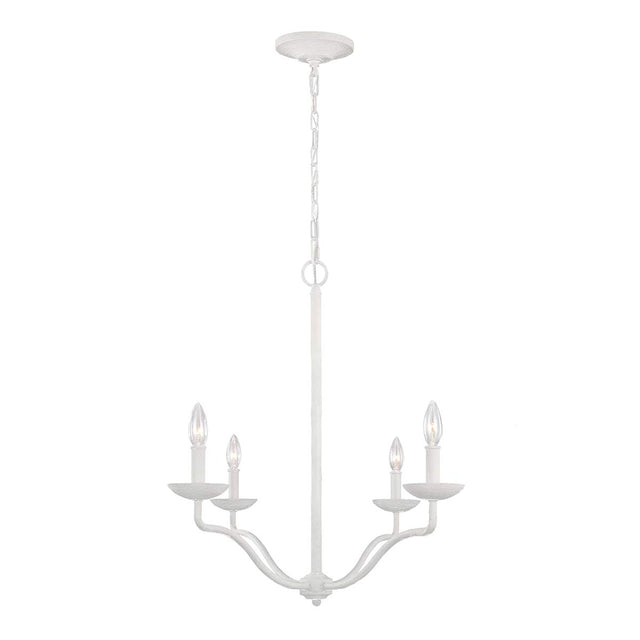 The Annie 4 arm chandelier is constructed of steel but finished in a heavy textured plaster white. This simple and elegant design draws on the popular coastal themed genre.