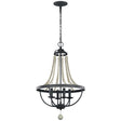 A transitional 4Lt chandelier, the Nori softens the Gothic style, dark weathered zinc iron work, with a gentle drape of driftwood grey beads.