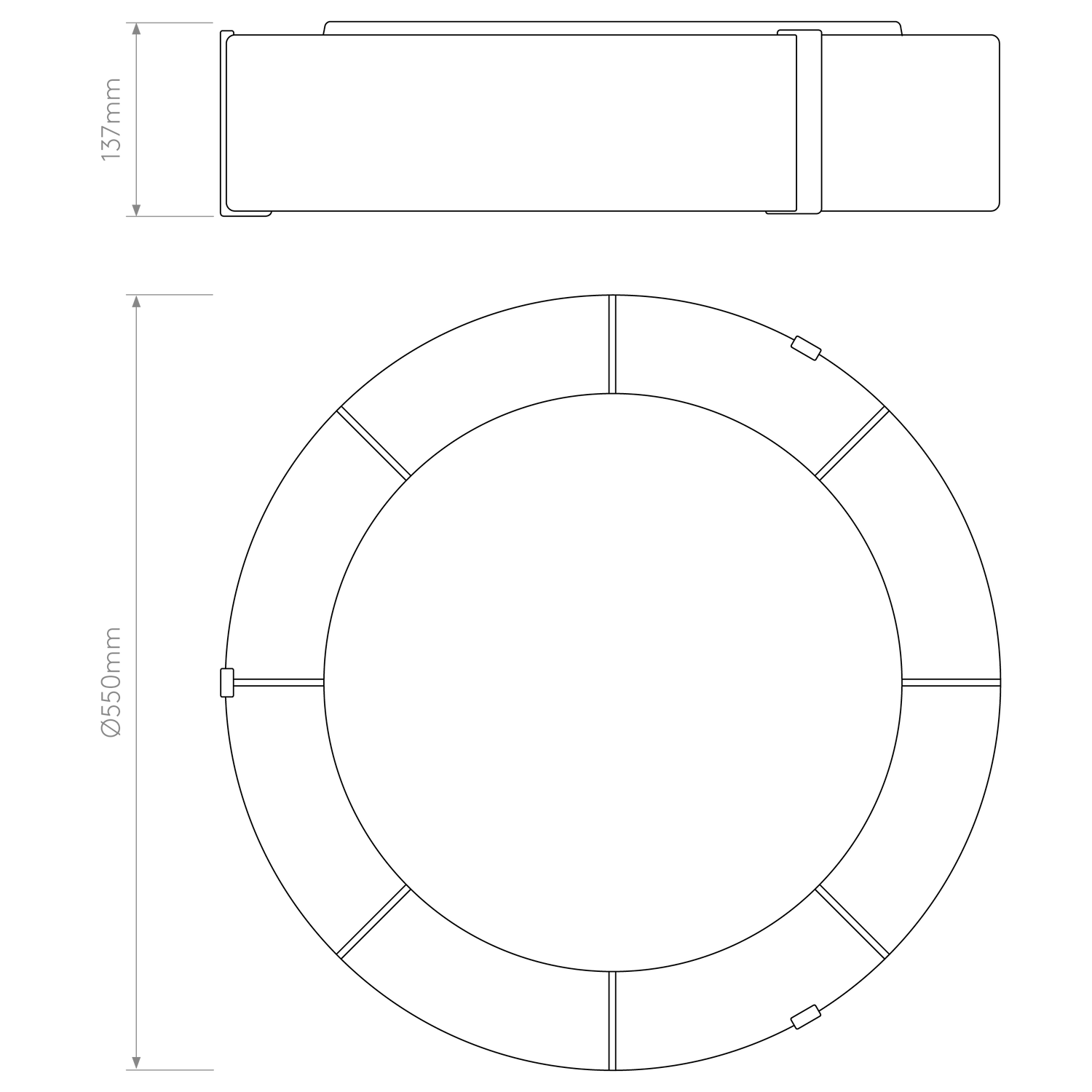 - Dimensions L x Dia: x 550 mm