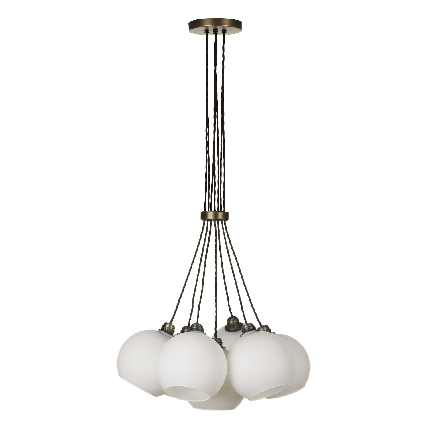 David Hunt Apollo 7 Light Cluster Pendant Antique Brass and Opal Glass