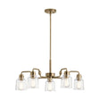 The Aivian 5 lt chandelier has an industrial-style build in a Weathered Brass finish. It's both refined and edgy, and is complimented with tapered edge glass shades. Convertible to Semi-Flush.