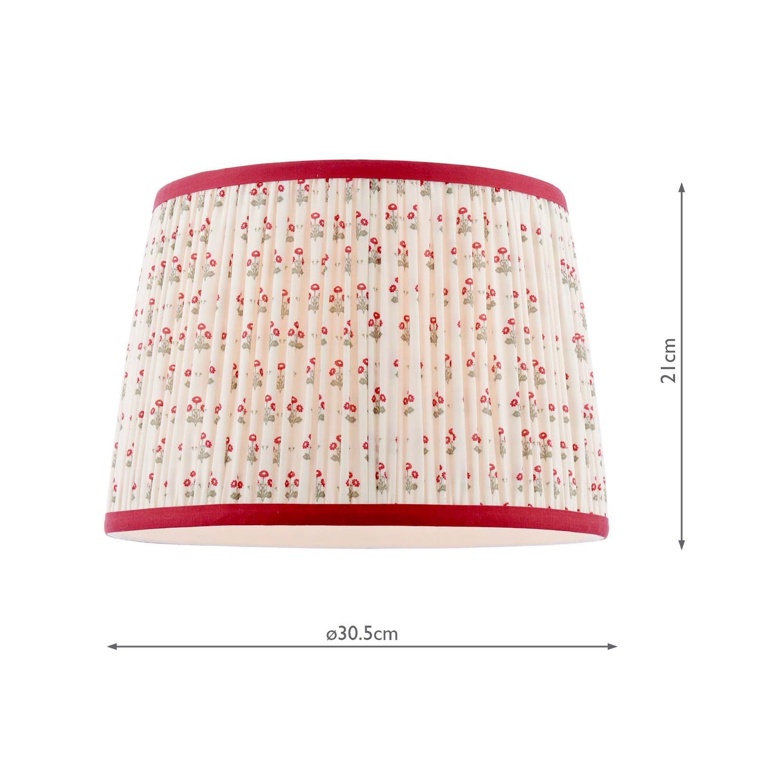 The Laura Ashley Harthill Daisies shade brings English garden charm with its beloved Harthill Daisies print paired with bold red trim. Featuring pleated design with Easy-Fit construction, this delightful 12-inch shade creates beautiful illumination perfect for table lamps, pendant lights, and reading nooks, combining timeless florals with contemporary twist that adds cosy character to modern and traditional interiors.