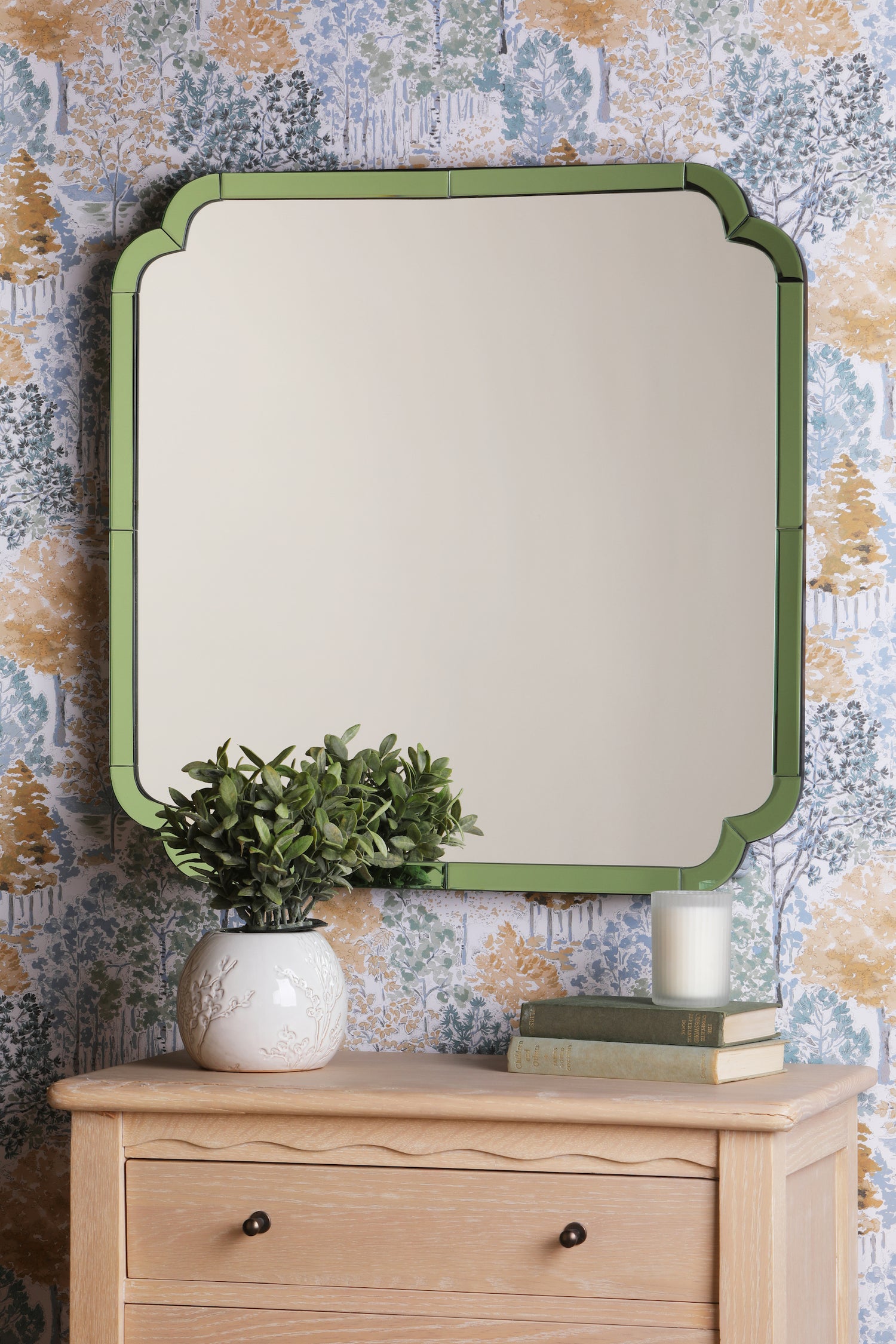 The Laura Ashley Martham Square Green Mirror brings bold, eye-catching style with its classic square silhouette featuring striking green-tinted glass edge. Featuring fashion-forward aesthetic with modern yet vintage-inspired styling, this gorgeous mirror brightens rooms and creates focal points perfect for entryways, living rooms, and above mantels, combining unique design with functional appeal that adds statement character to contemporary and traditional interiors.