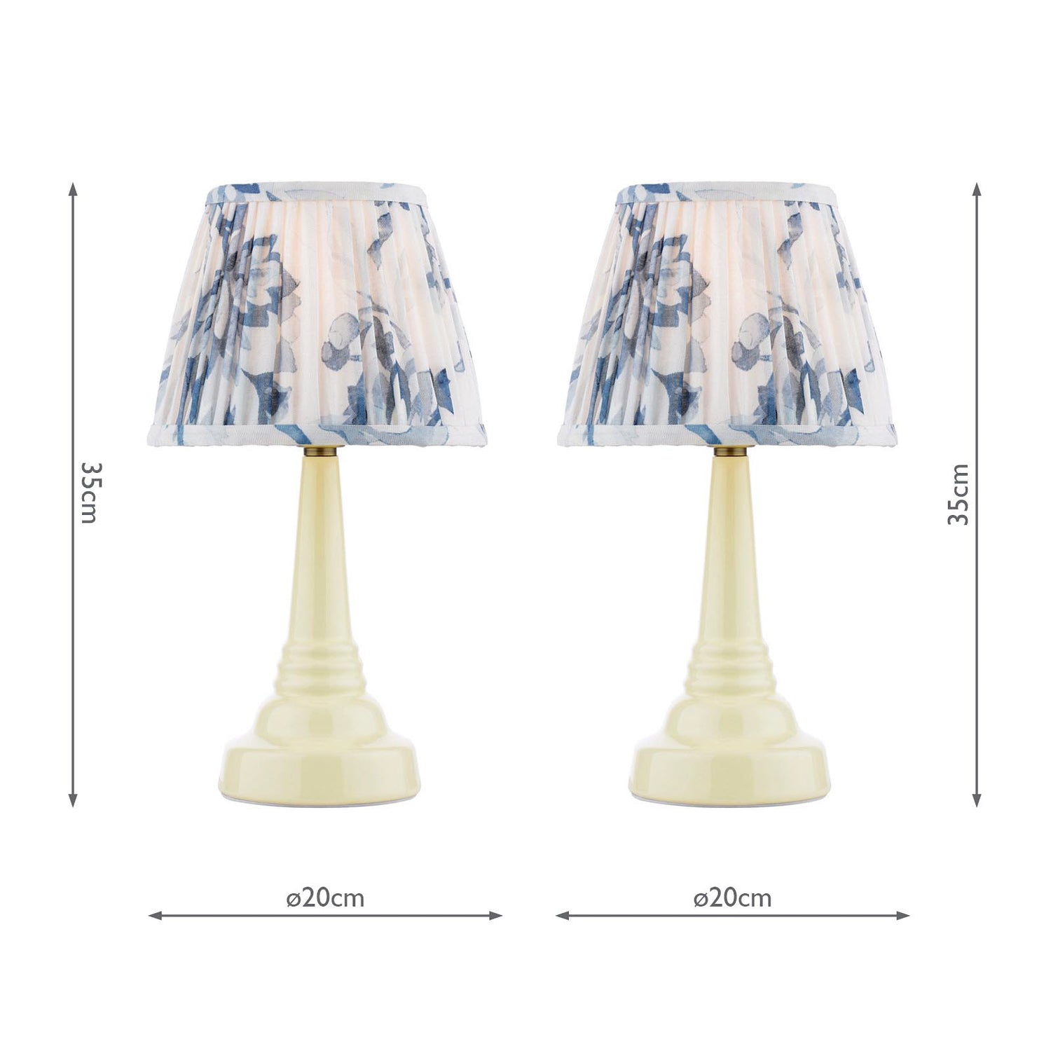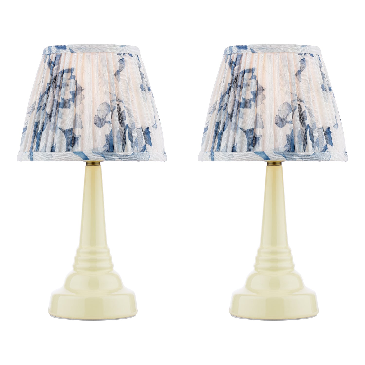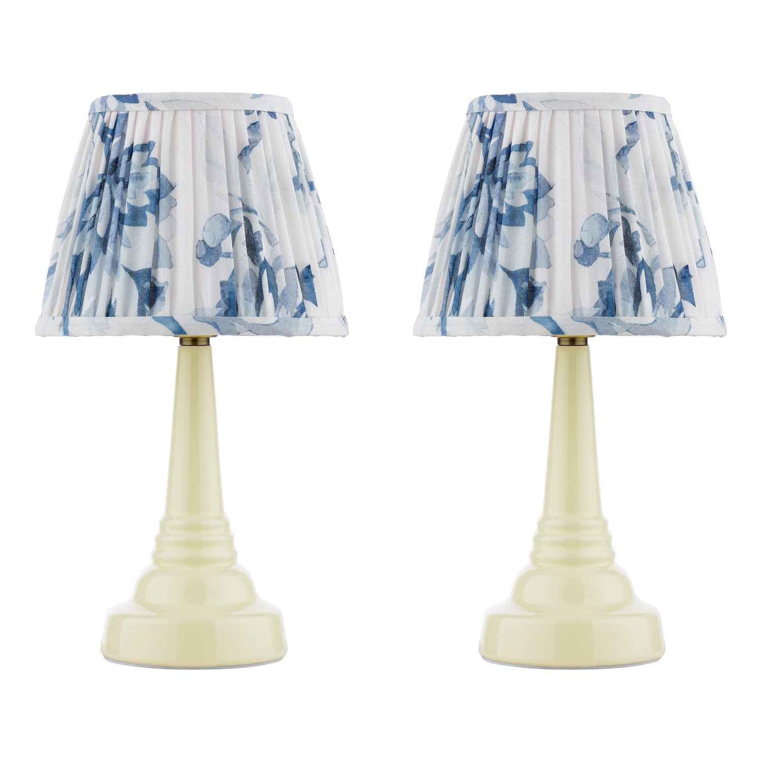 Crafted by Laura Ashley with attention to British detailing, the Adwick twin pack showcases timeless design with cream ceramic bases and signature blue and white Adwick trail print multi-coloured cotton mix tapered drum shades. Twin pack provides coordinated lighting solution. Complete with shades for immediate use. Each lamp requires 1 x E14 bulb (not included, max 25W, LED E14 recommended).