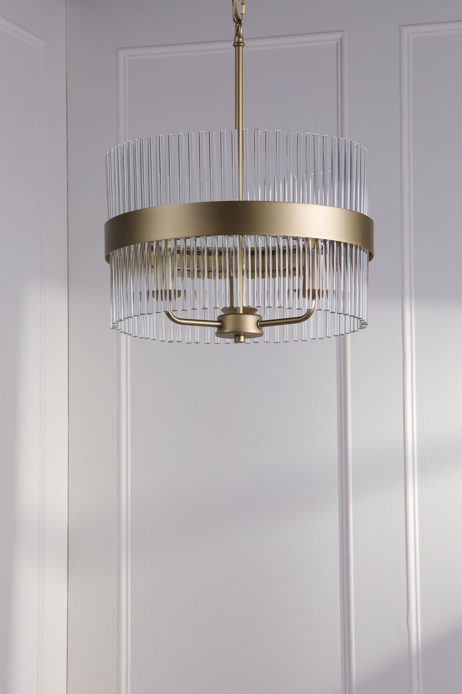 The Alexa 3-light pendant excels in bedrooms where matt antique brass adds character to sleep sanctuary, in living rooms where glass rods create soft layered lighting, or in hallways where vintage flair provides stylish statement piece. The antique brass and glass combination works beautifully in contemporary interiors, traditional homes, cosy bedrooms, and spaces seeking versatile pendant lighting with old-world charm and understated sophistication.