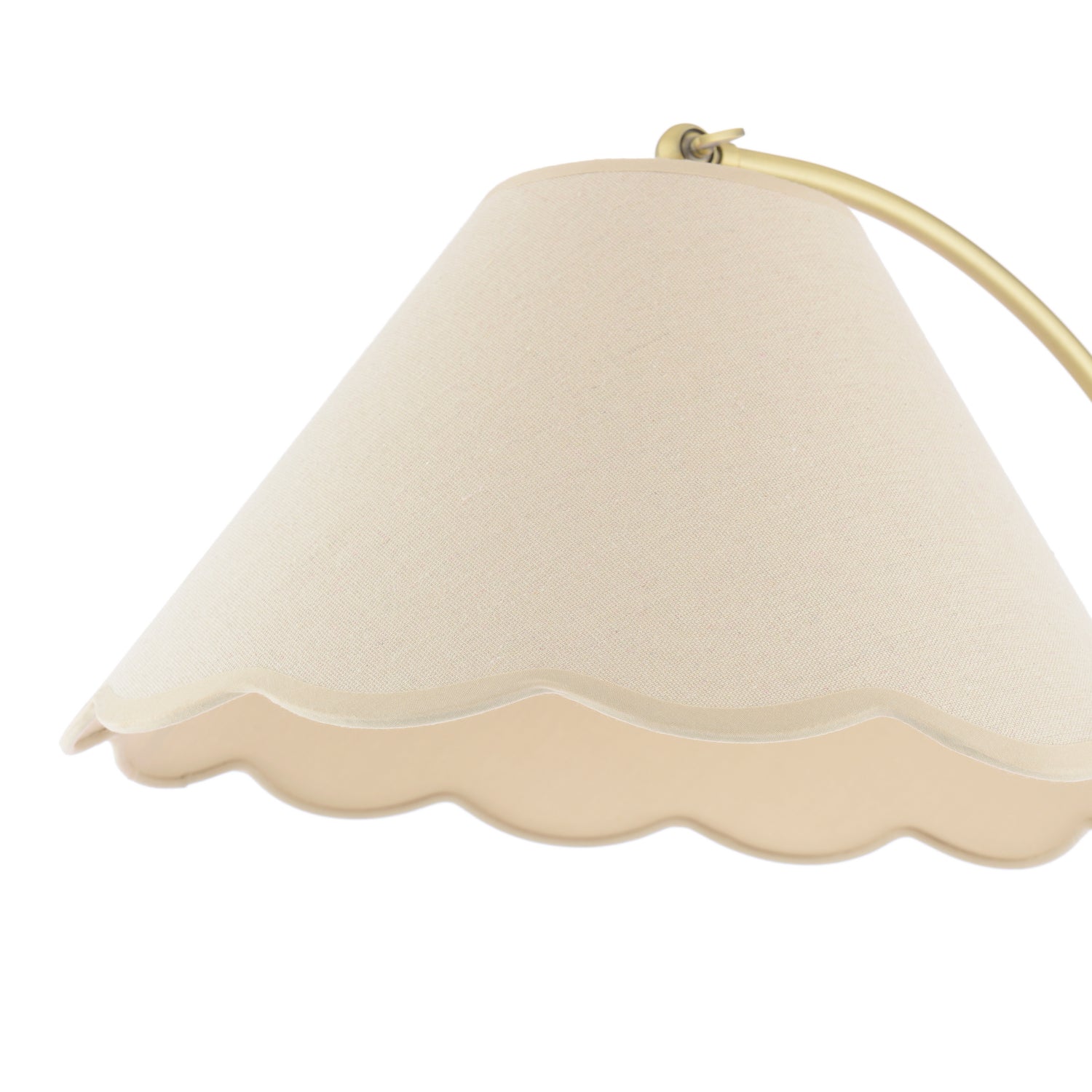 - Natural linen scalloped shade – Features delicate edges casting enchanting patterns when illuminated, included