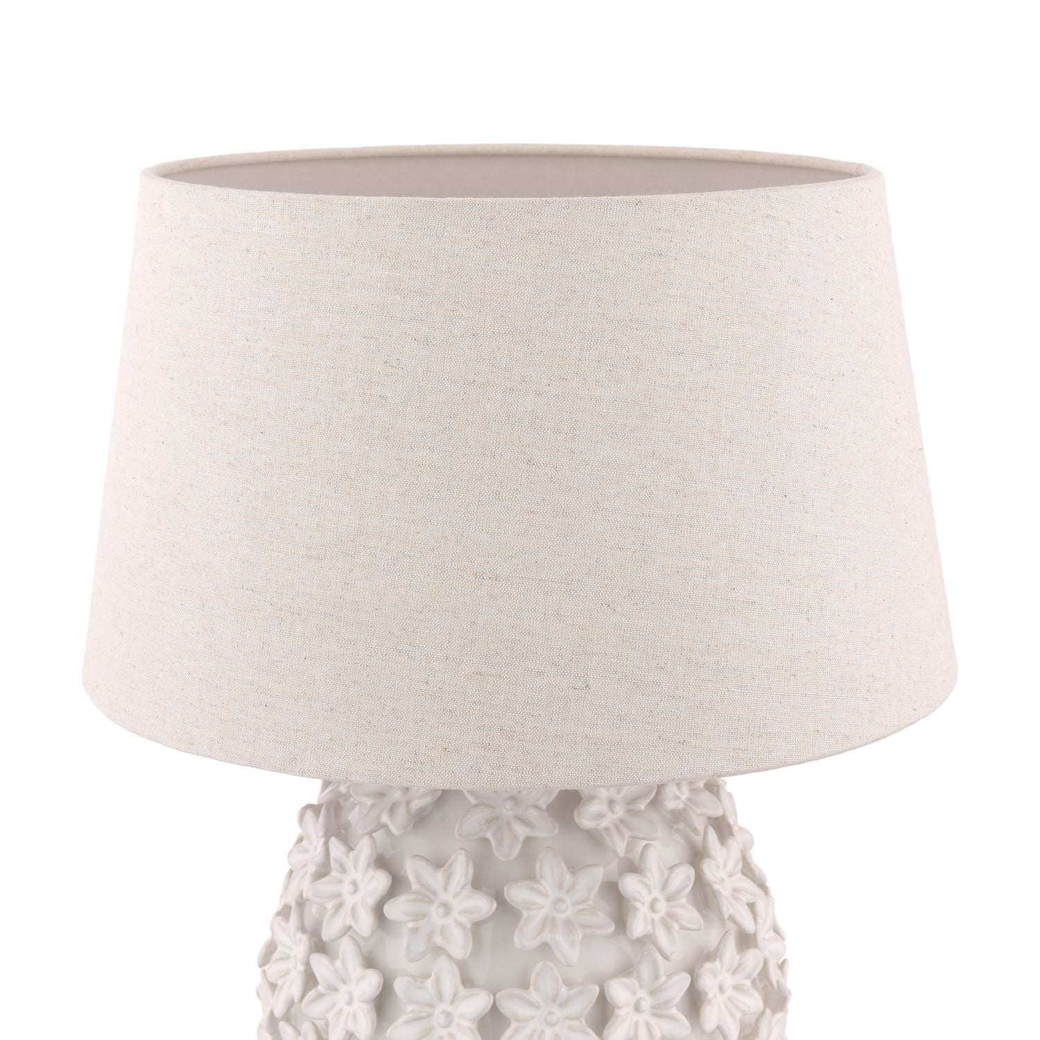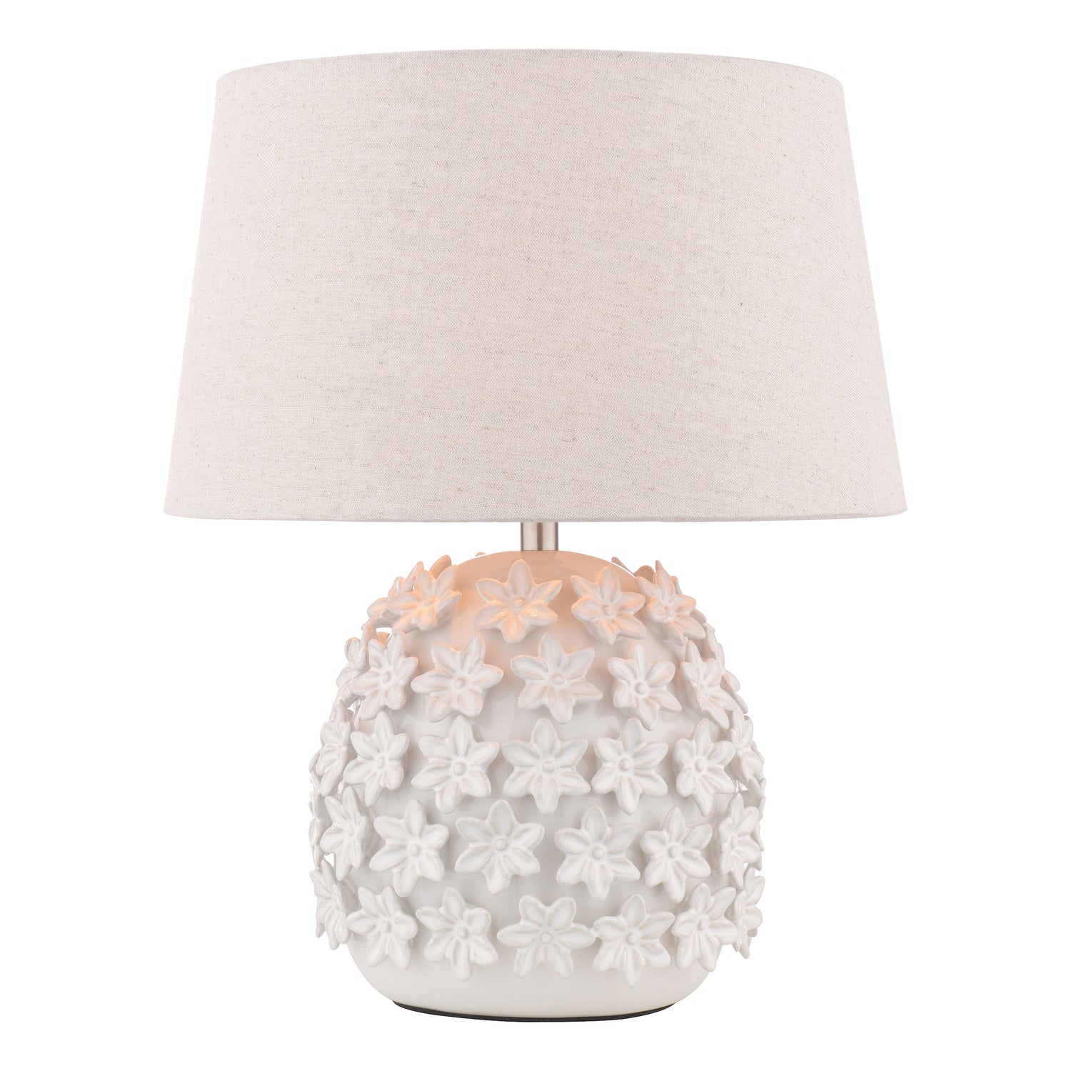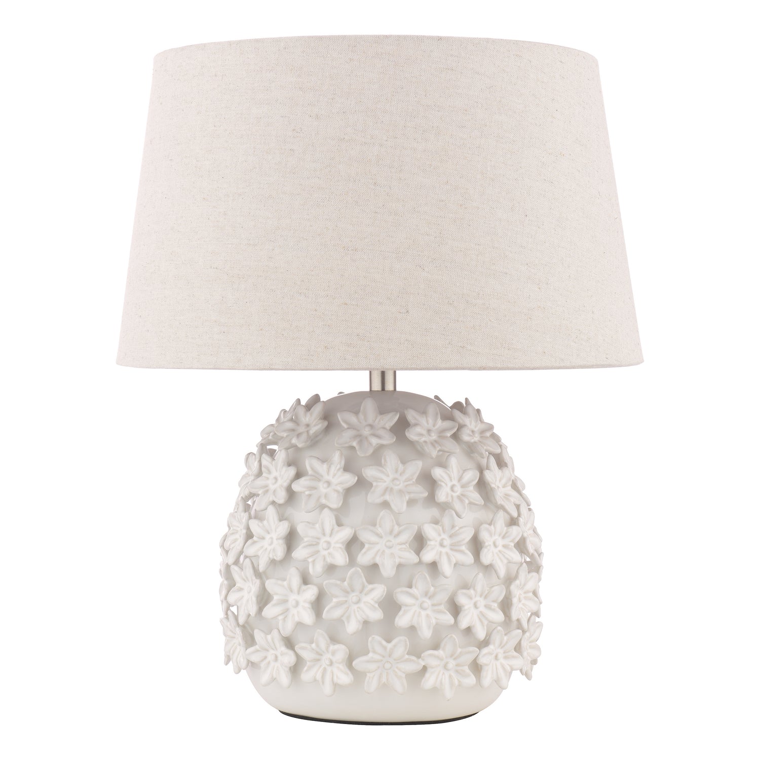 The Ingham lamp excels in living rooms where romantic floral adds elegant ambiance on side tables, in hallways where soft glow welcomes you home, or in entryways where classic styling provides cosy atmosphere. The white ceramic and brushed silver combination works beautifully in traditional interiors, contemporary homes, elegant living rooms, and spaces seeking versatile table lamps with timeless style and quality craftsmanship.