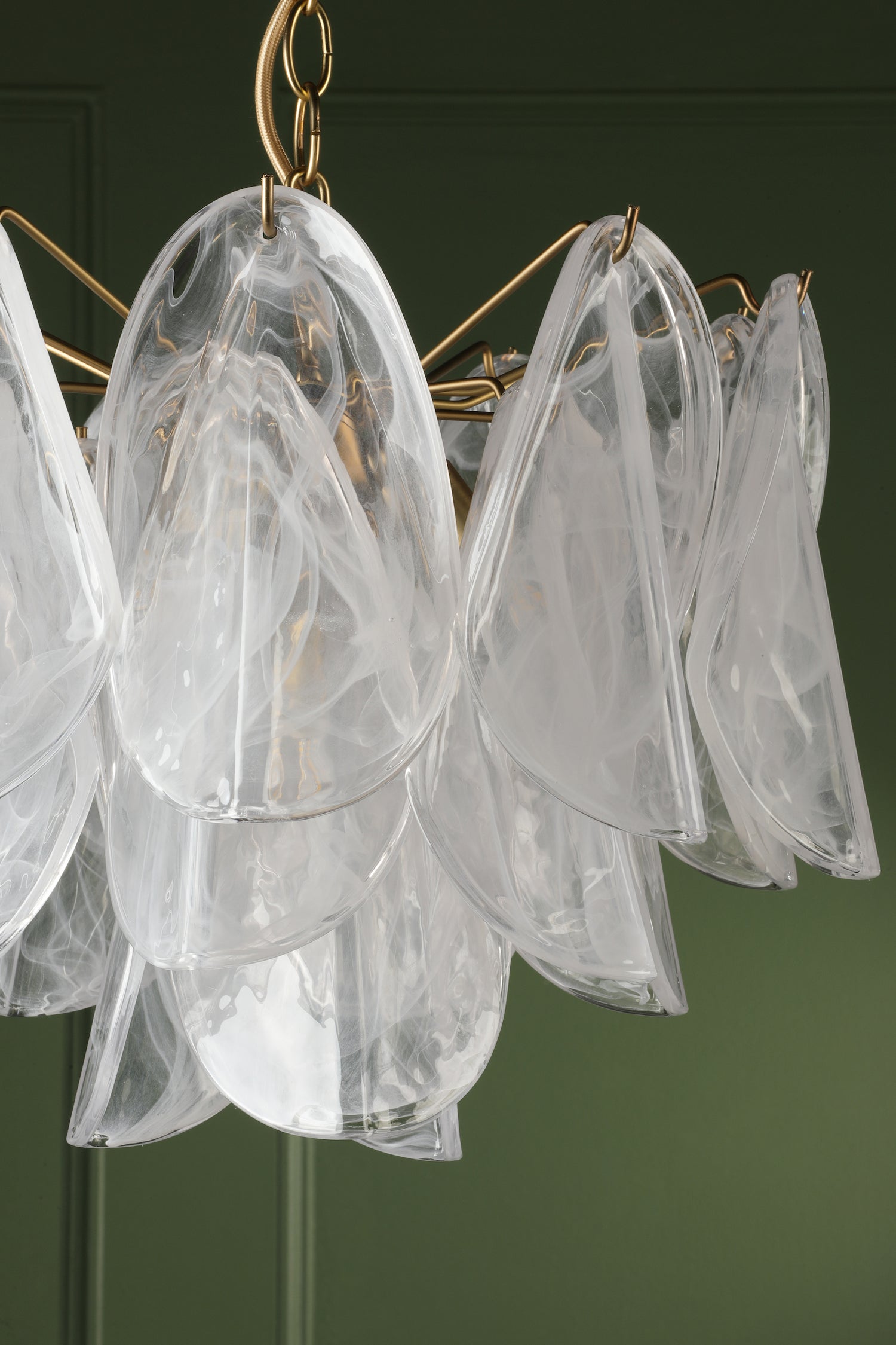 Crafted by Laura Ashley with attention to elegant detailing, the Stannington chandelier showcases timeless design with matt antique brass metalwork and artisan patterned white glass shades. The adjustable height suits various ceiling heights while creating warm, inviting glow. Requires 4 x G9 bulbs (not included, max 20W each, LED G9 6w recommended).