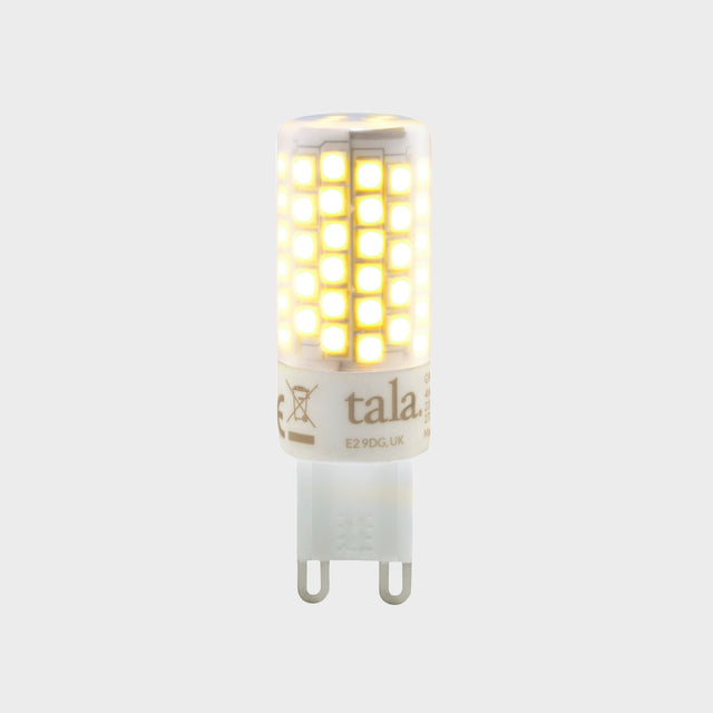 Designed to overcome the technical deficiencies of other LED G9 equivalents, such as poor dimming, short lifetime and substandard light quality, the Tala G9 is built from heat-dissipating ceramic to allow long lifetime in enclosed luminaires* and comes with Tala’s signature smooth dimming characteristics.
