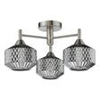 Dar Fabrienne 3 Light Semi-Flush Satin Nickel and Smoked Glass