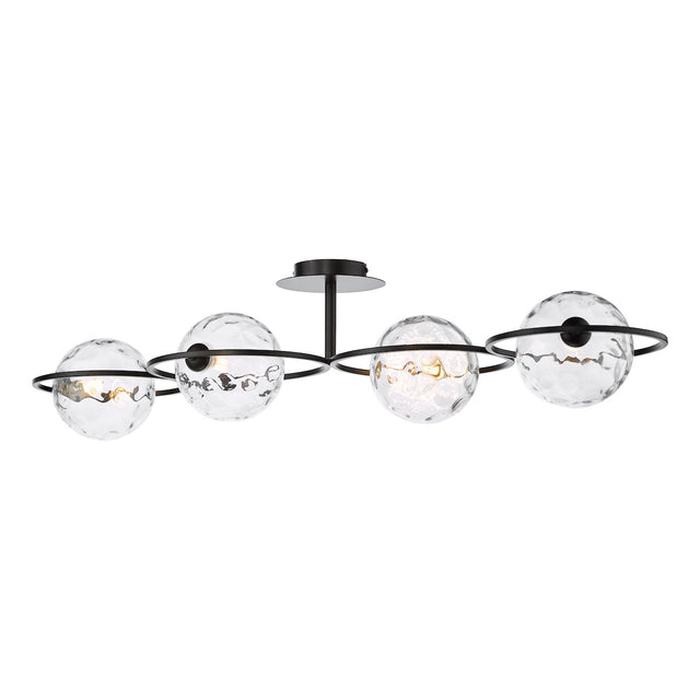 Dar Olympus 4 Light Semi-Flush Matt Black and Clear Dimpled Glass