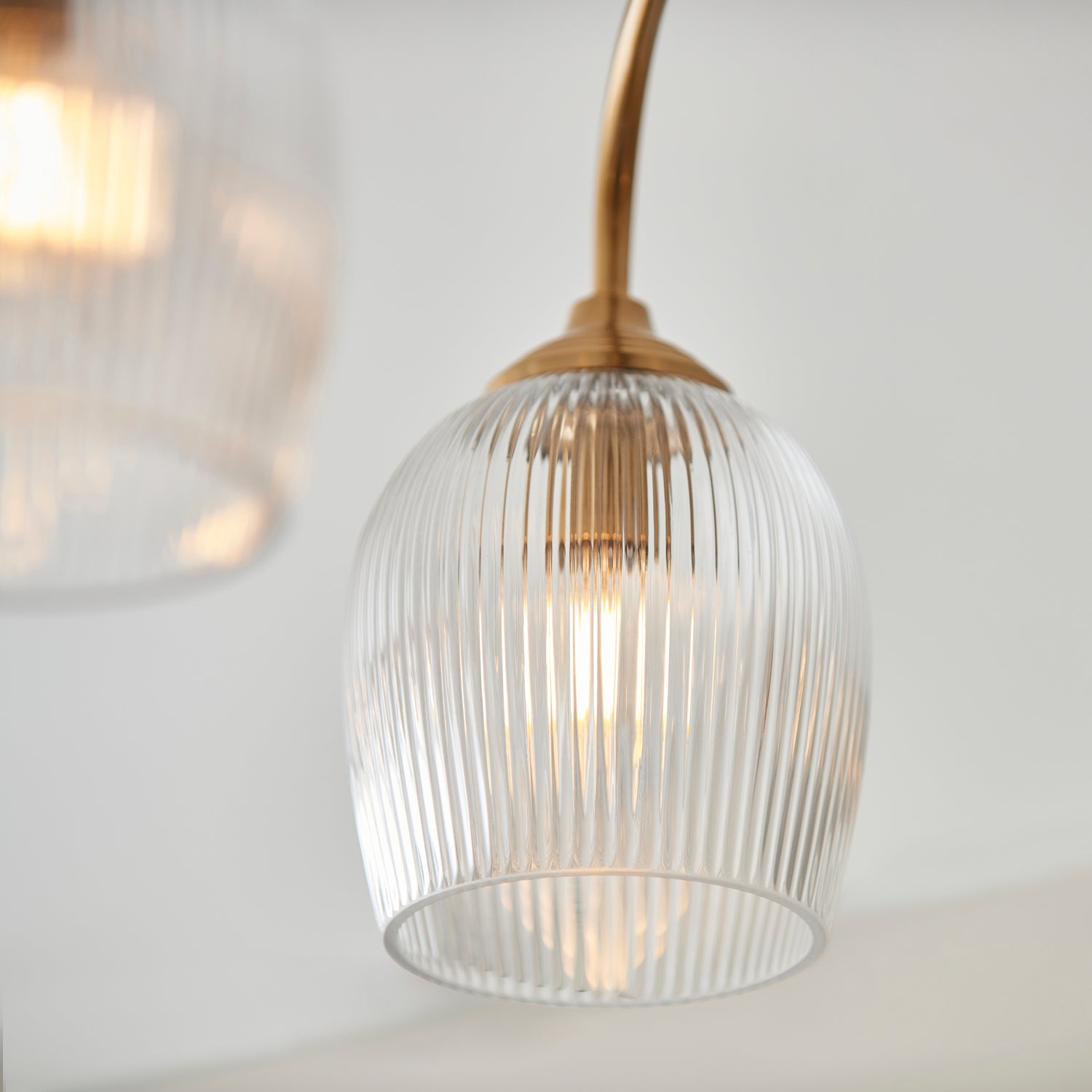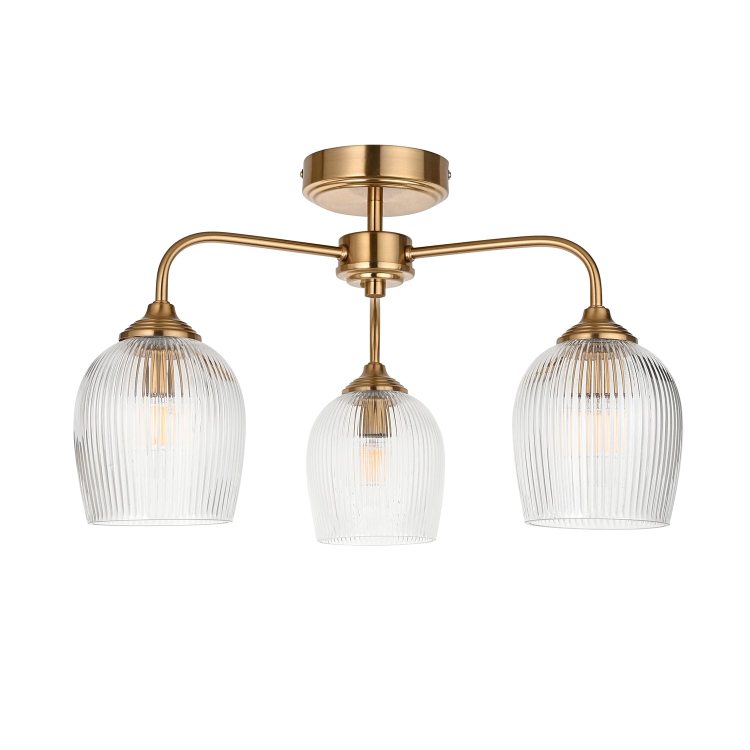 Endon Ashcroft Ribbed 3lt Semi Flush Brushed aged brass plate & clear ribbed glass