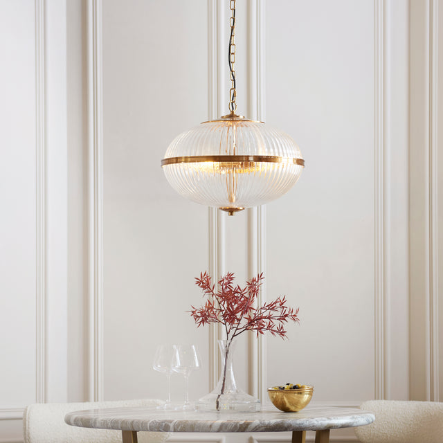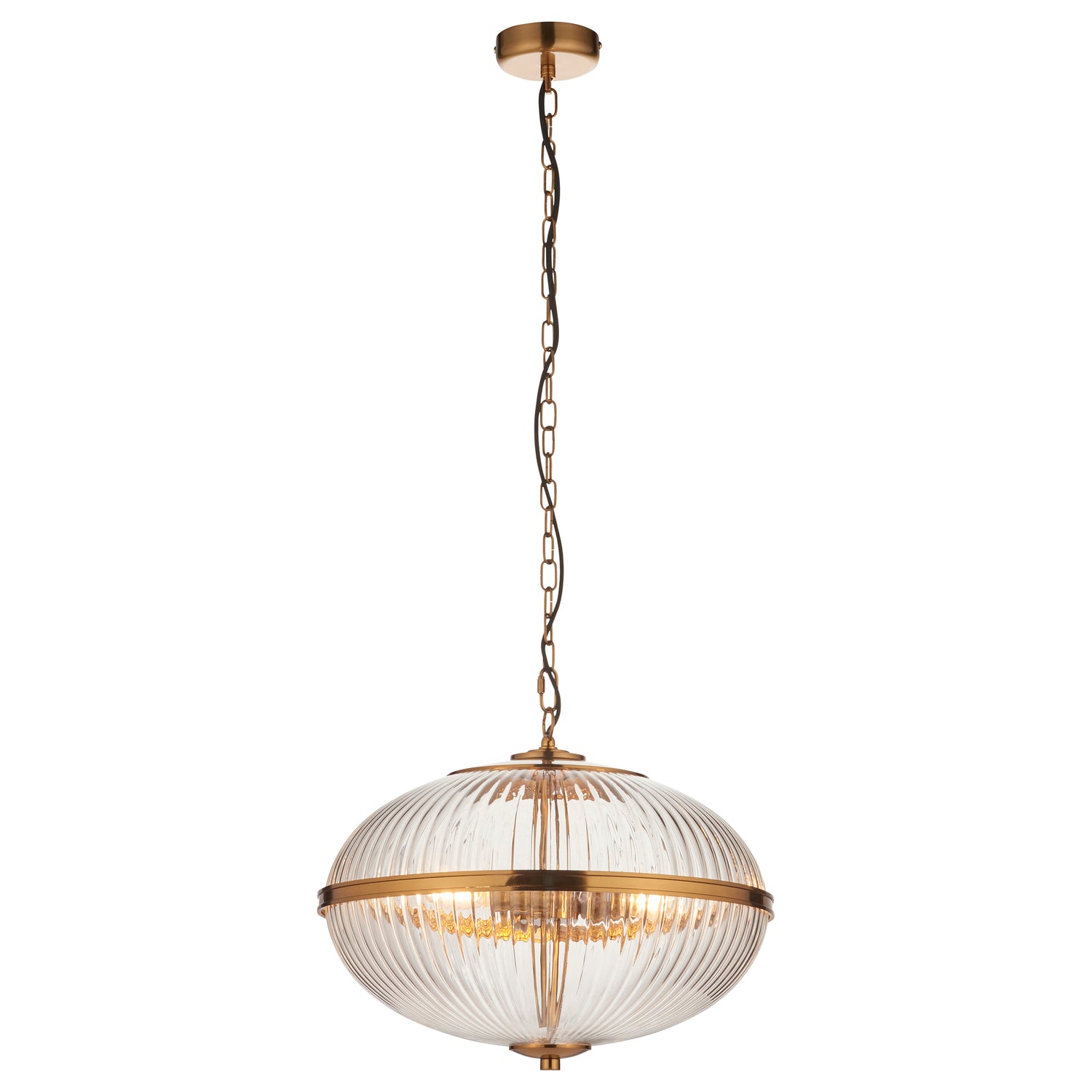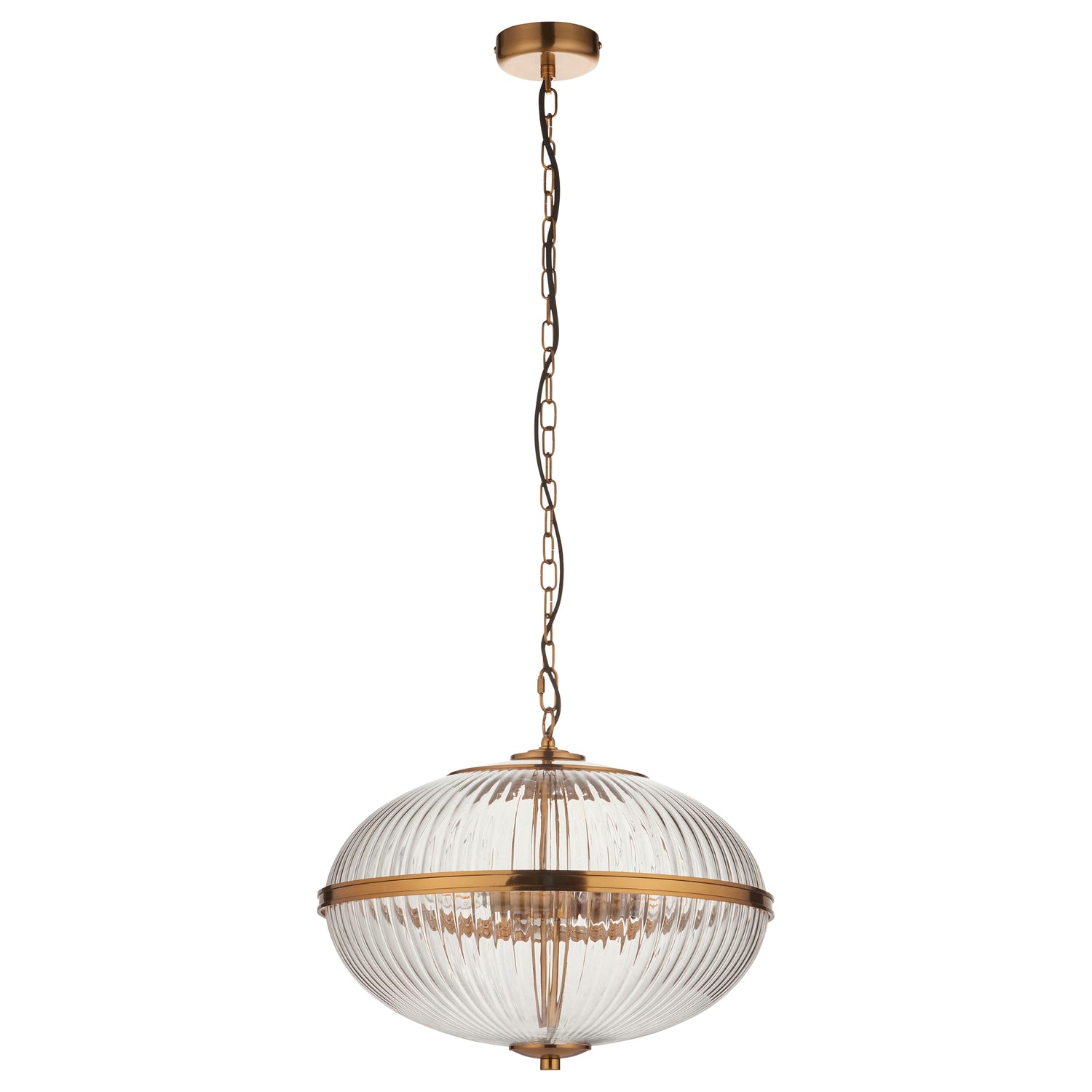Endon Somerset 3lt Pendant Vintage brass finish & clear ribbed glass