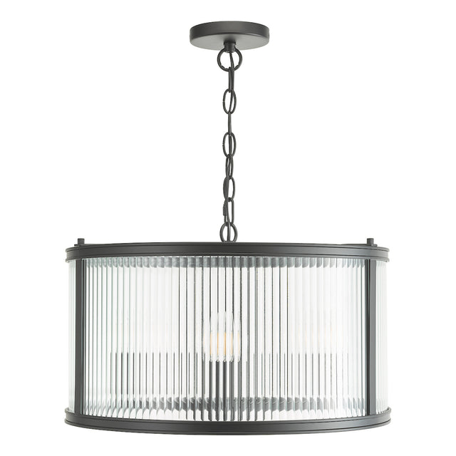 Dar Bianka 3 Light Pendant Matt Black and Ribbed Glass