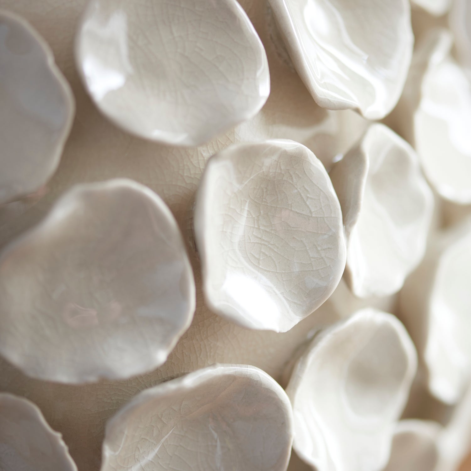 Inspired by nature this hand decorated sculptured ceramic base is finished in a gloss vintage white crackle glaze. With switched brass B22 lamp holder and natural colour braided flex, pair with a choice of our 35cm decorative fabric or 32cm raffia shades for the perfect interior addition.. Perfect for elevating your interiors, this piece blends timeless design with contemporary sophistication to create a stunning focal point.