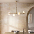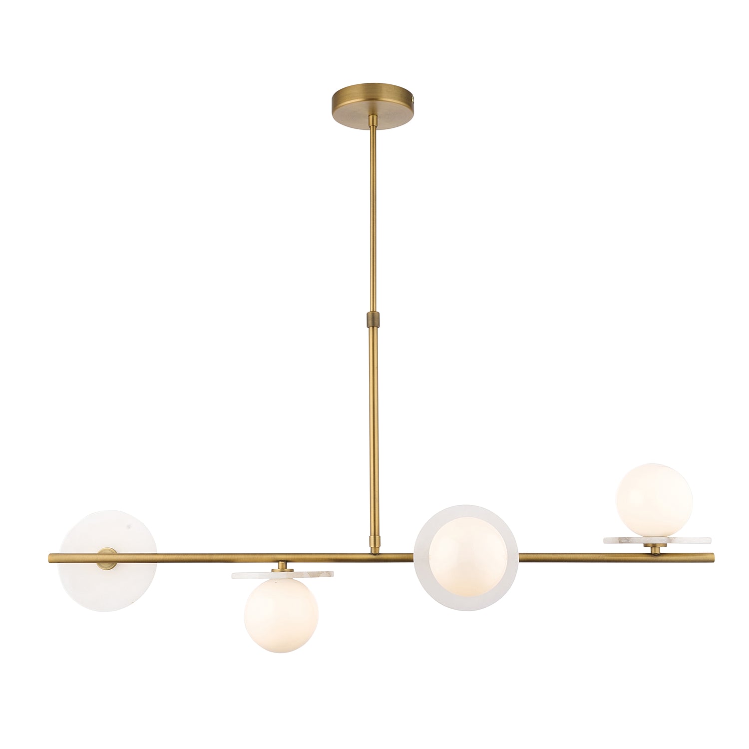 Endon Cerchio 4-Light Linear Pendant in Warm Antique Brass, Alabaster Stone & Gloss White Glass