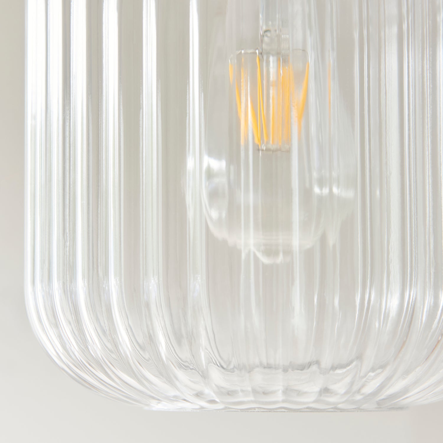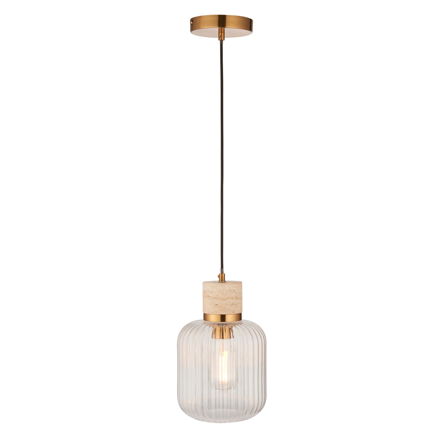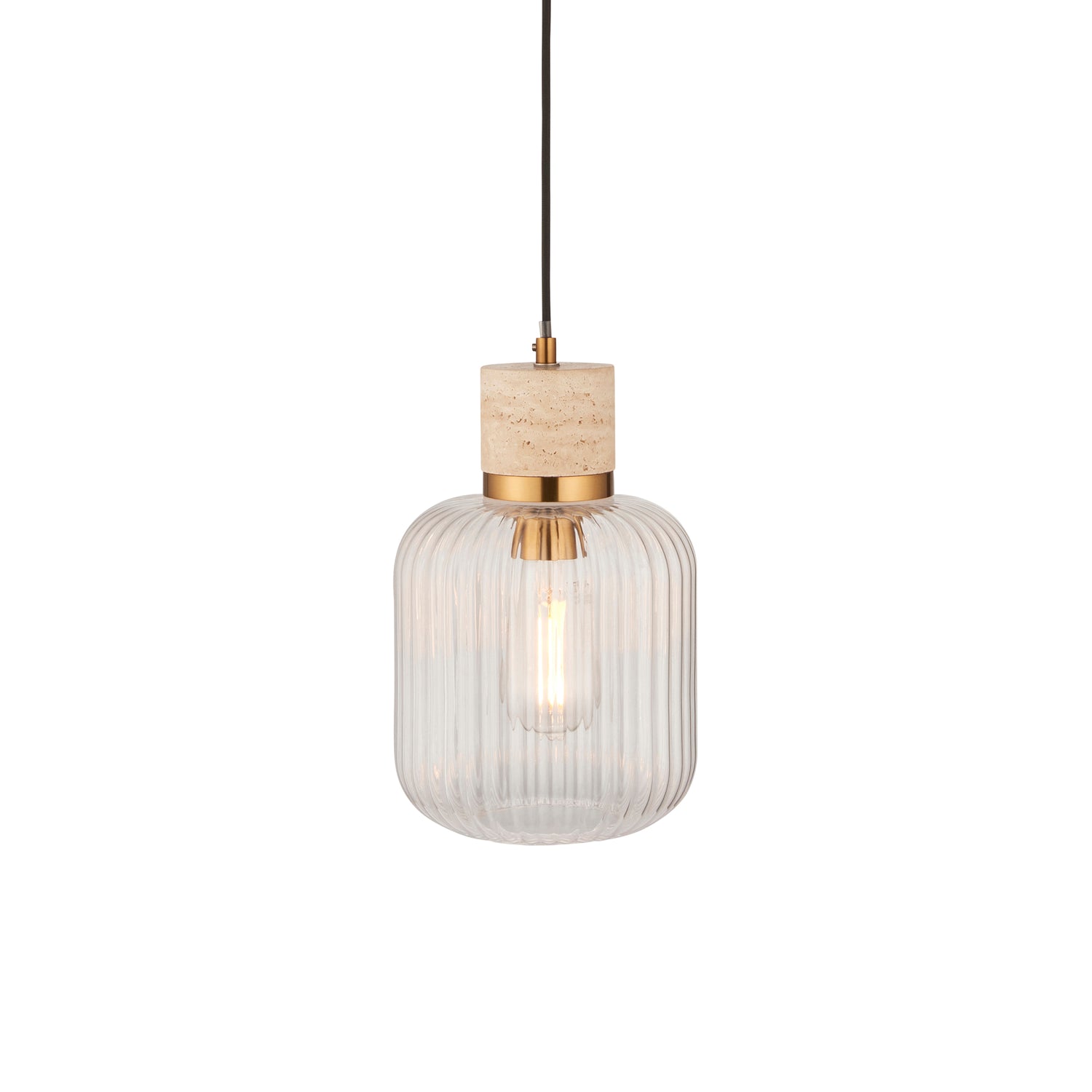 Endon Travi Ribbed Pendant Natural travertine, vintage brass & clear ribbed glass