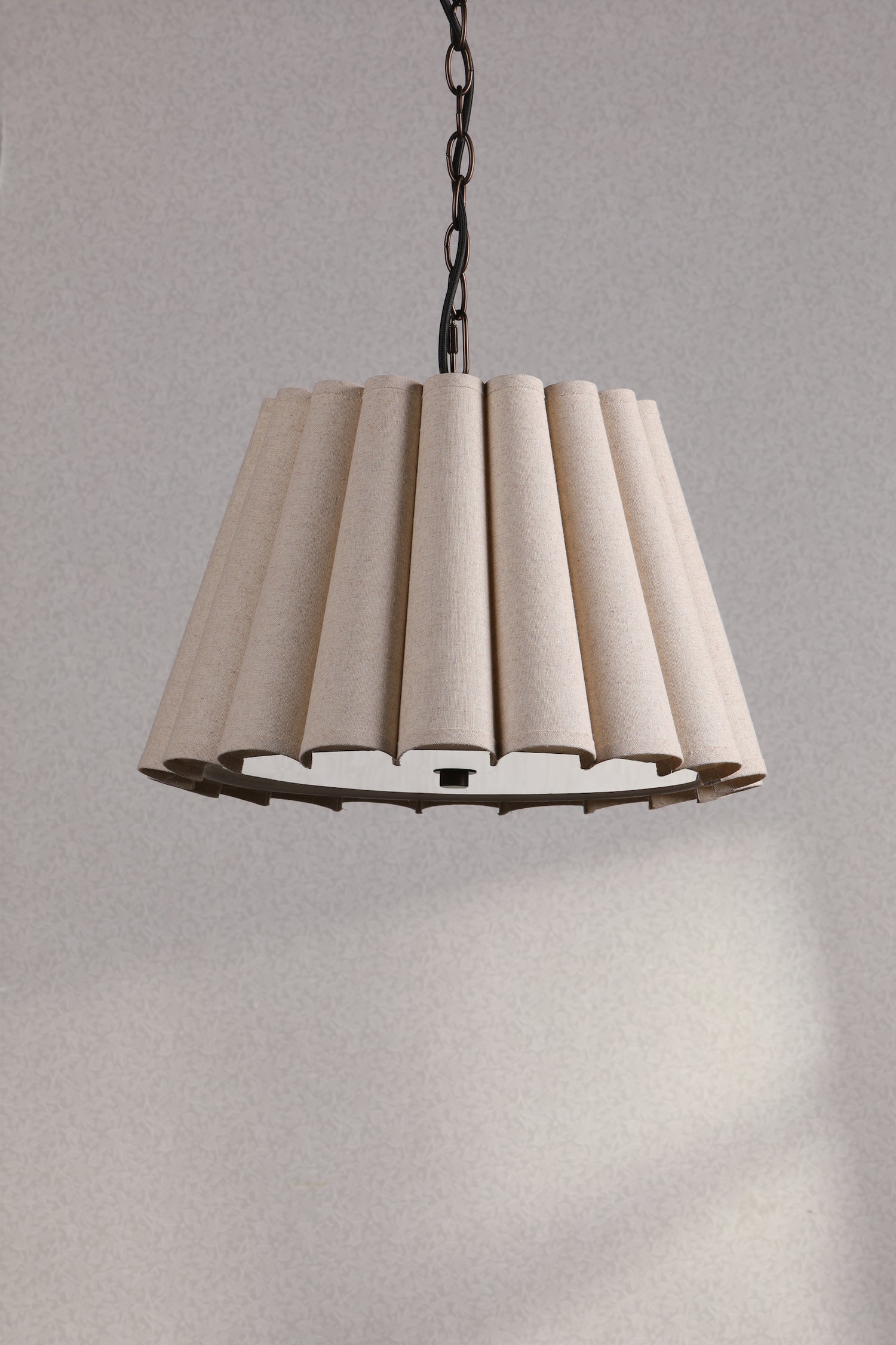- Natural linen shade – Emits soft, diffused illumination filling space with inviting radiance