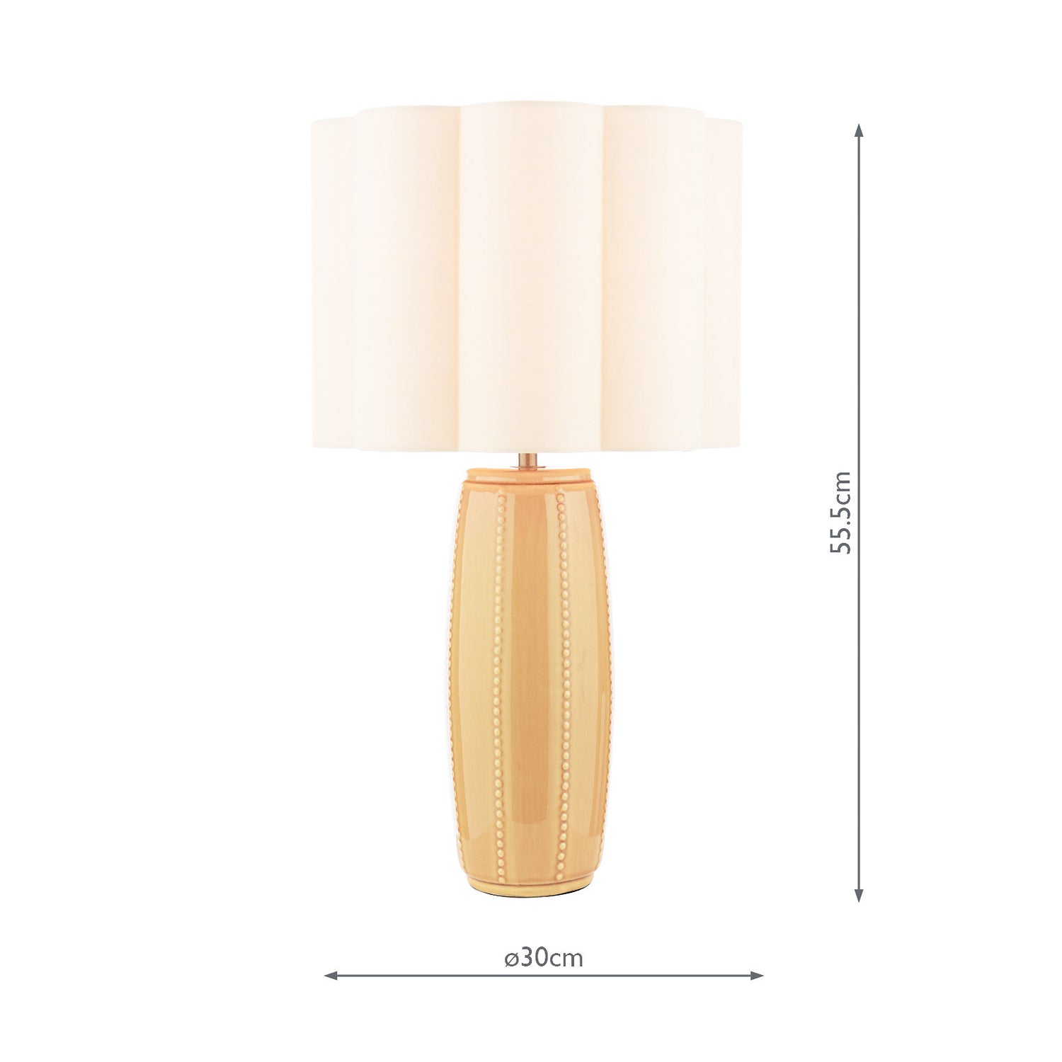 - Natural scalloped shade – Cotton mix shade diffuses light elegantly creating cosy glow, included
