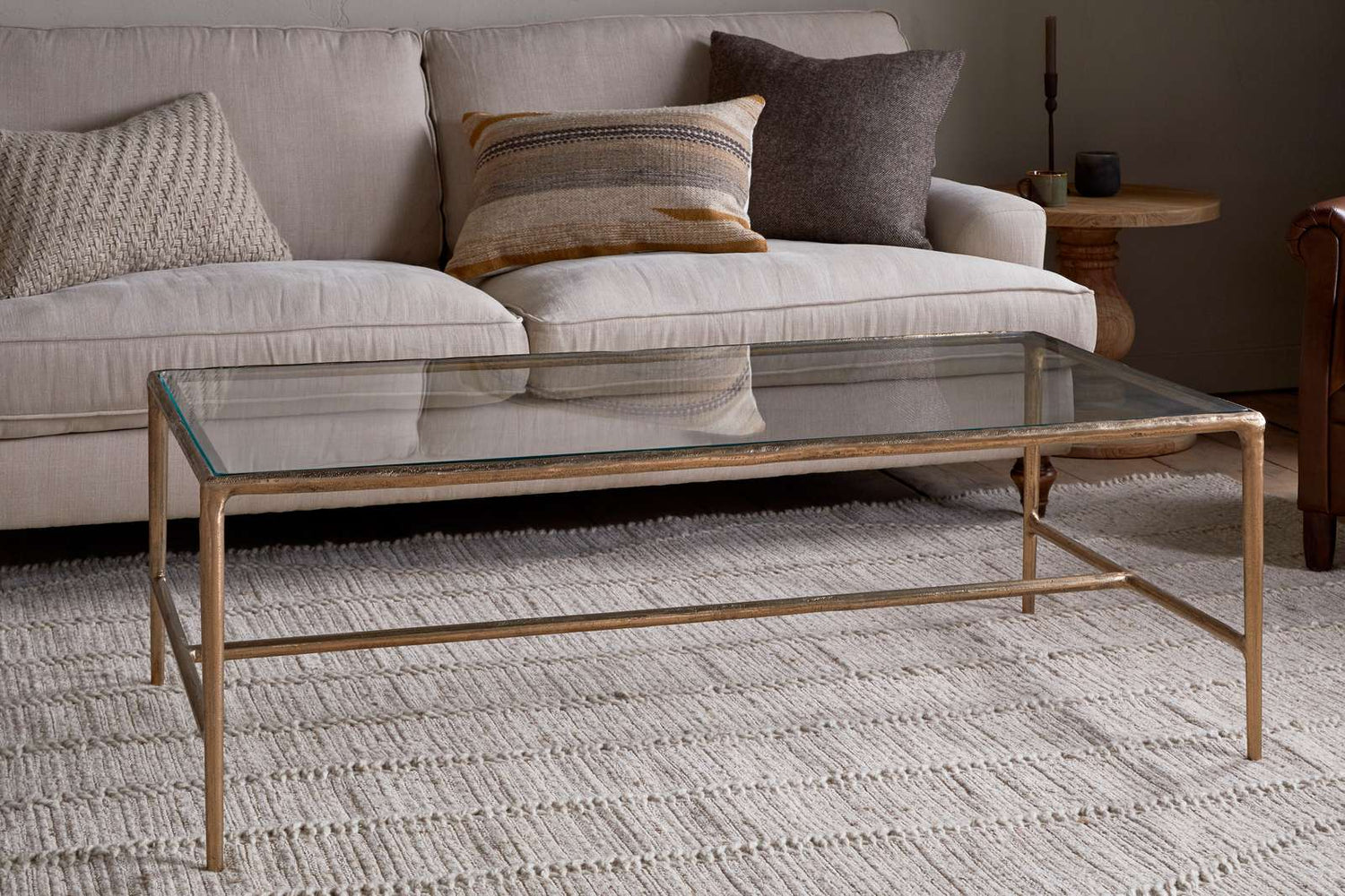 Nkuku Gilasi Cast Metal & Glass Coffee Table Antique Brass