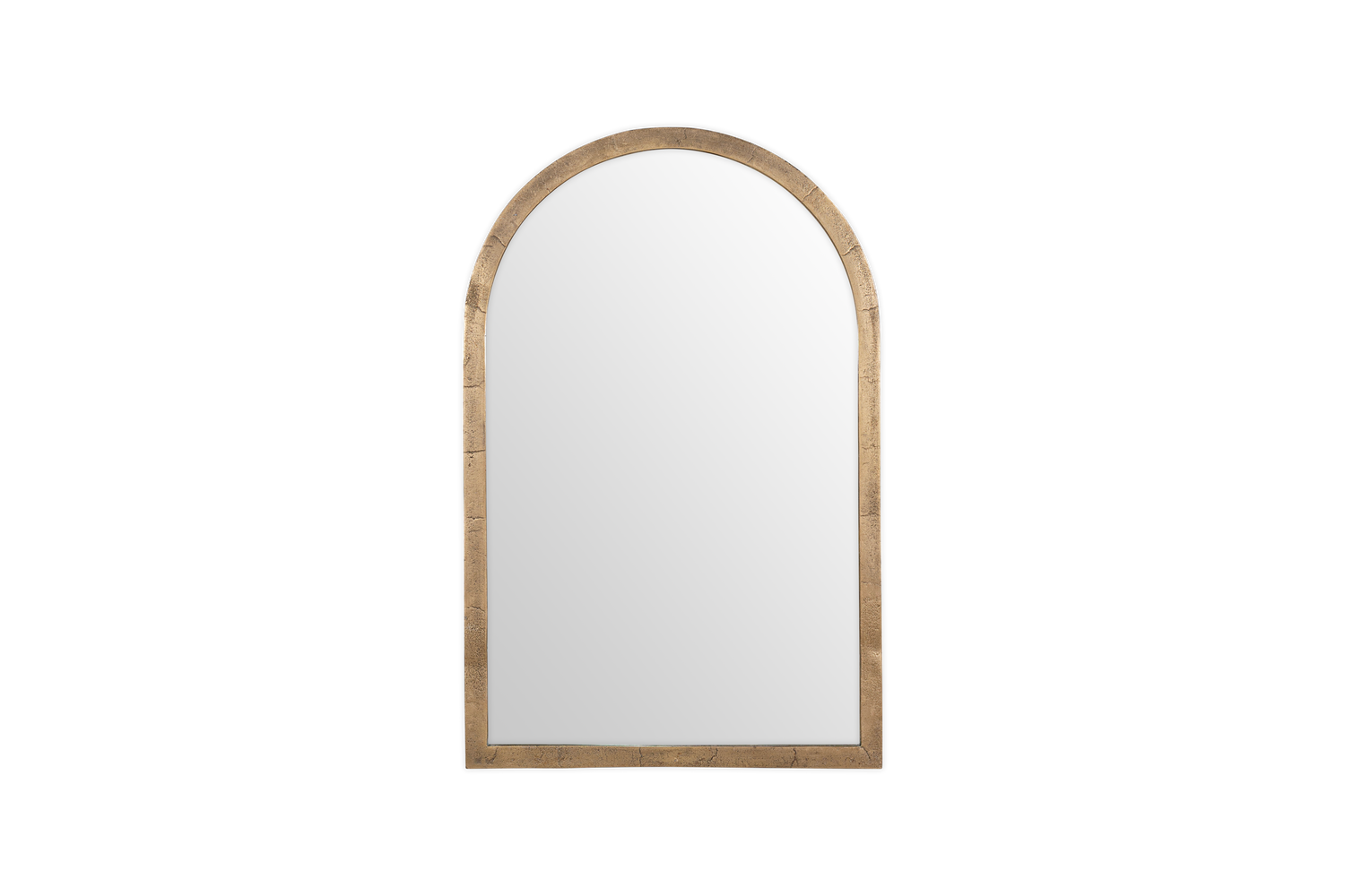 With its bold arched silhouette and generous scale, the large Murwara mirror makes a striking statement. The textured frame in a warm antique brass finish brings depth and character, while its clean, curved lines add a refined architectural feel. Perfect for bedrooms, hallways or living spaces, it enhances light and creates a sense of space with effortless style.