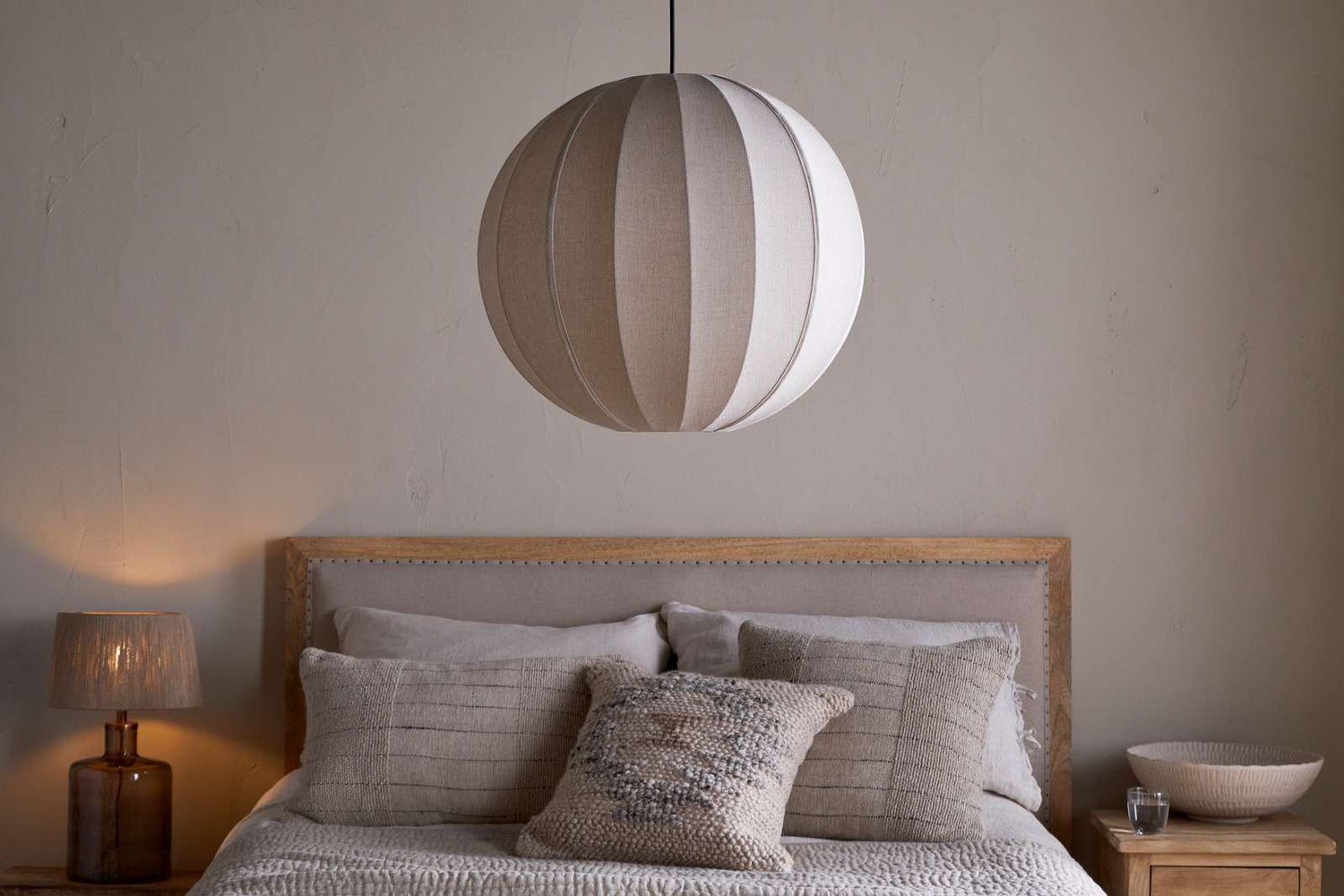 Our Dharini Linen lampshade is the epitome of softness, making it the perfect addition to your bedroom or cosy space. Designed for easy installation, it can be fitted to an existing pendant or used with our Otti pendant fitting, no electrician required. The textured linen beautifully diffuses light, creating a warm and inviting glow. This understated yet stunning shade makes an ideal bedroom light.