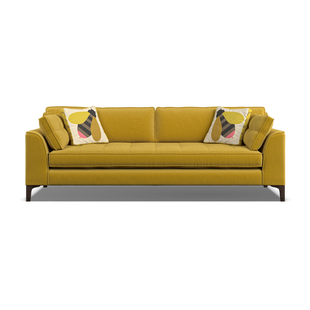 An updated modern design with a Mid Century aesthetic the Arklow has clean lines and generous wide-open bench style seating. This joyful shape provides a striking presence to any space, the deep tufted foam seats and arm bolsters are super comfortable, sitting on bracket style timber legs, it is strong, soft and sturdy. Be bold with colour combining an all over pattern footstool also available in the range.