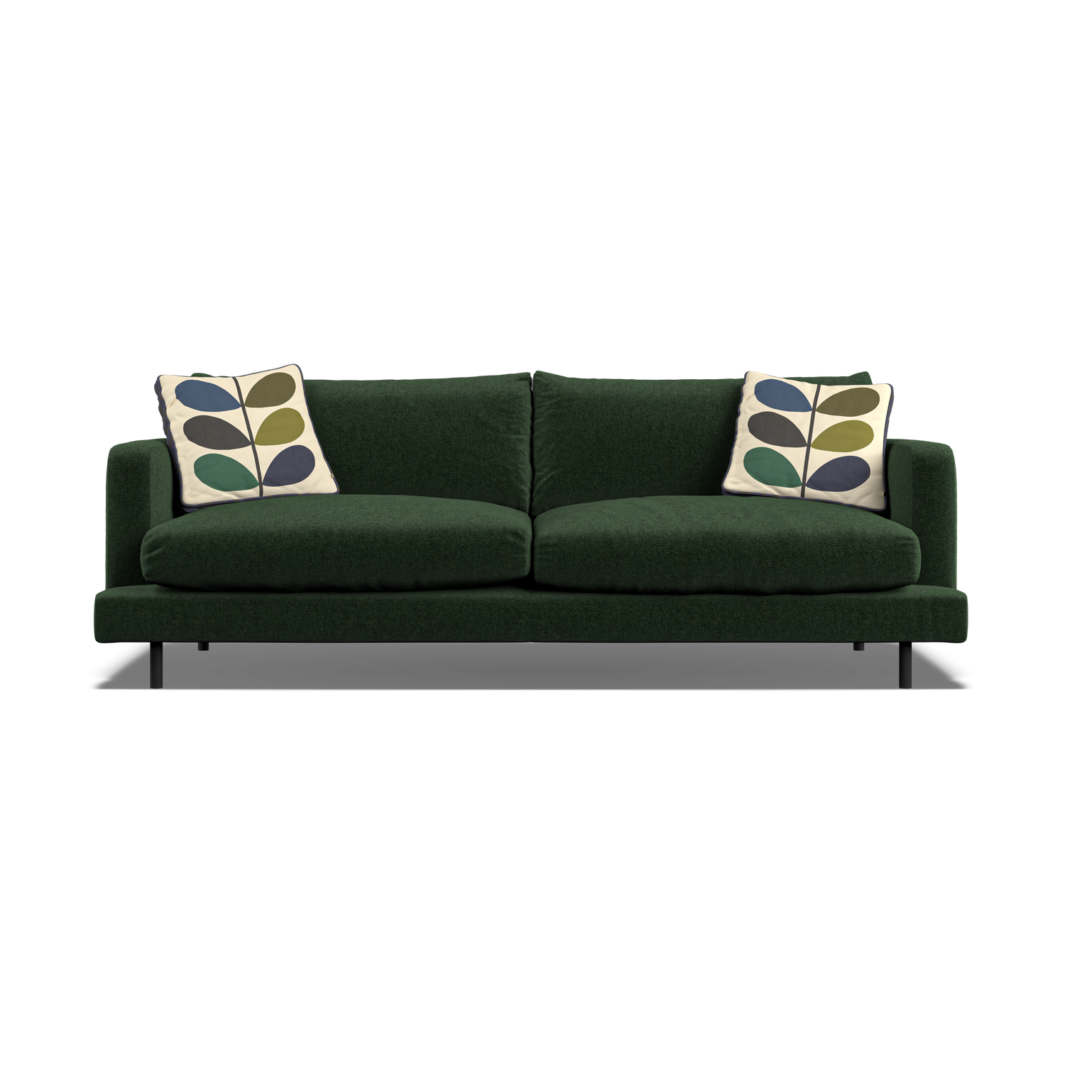 The Larch has ultra‐clean lines, a low‐profile stance and narrow set back arms. Available either with architectural black powder-coated steel legs for a light, floating appearance or more traditional tapered wood. Subtle features like the wrap over front seat pads and low backs give Larch a laid-back modern aesthetic.
