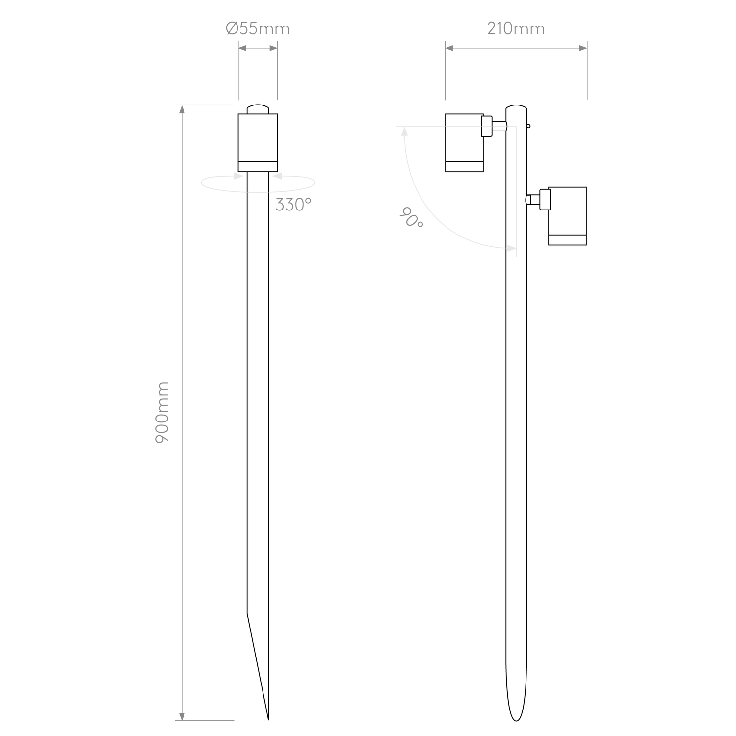- Dimensions L x W x H: 210 x 55 x 900 mm