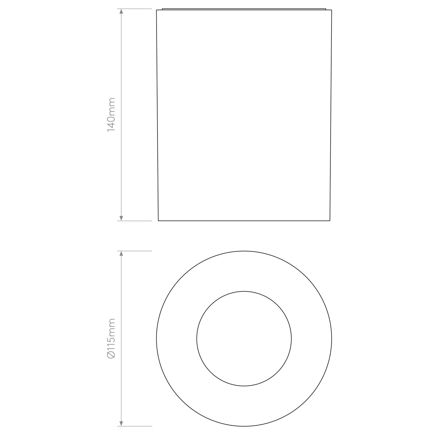 Available in two sizes and finishes of Textured Black or Textured White, the Kos LED ceiling light is durable, low-maintenance, and weather-resistant, perfect for residential or commercial outdoor environments.
