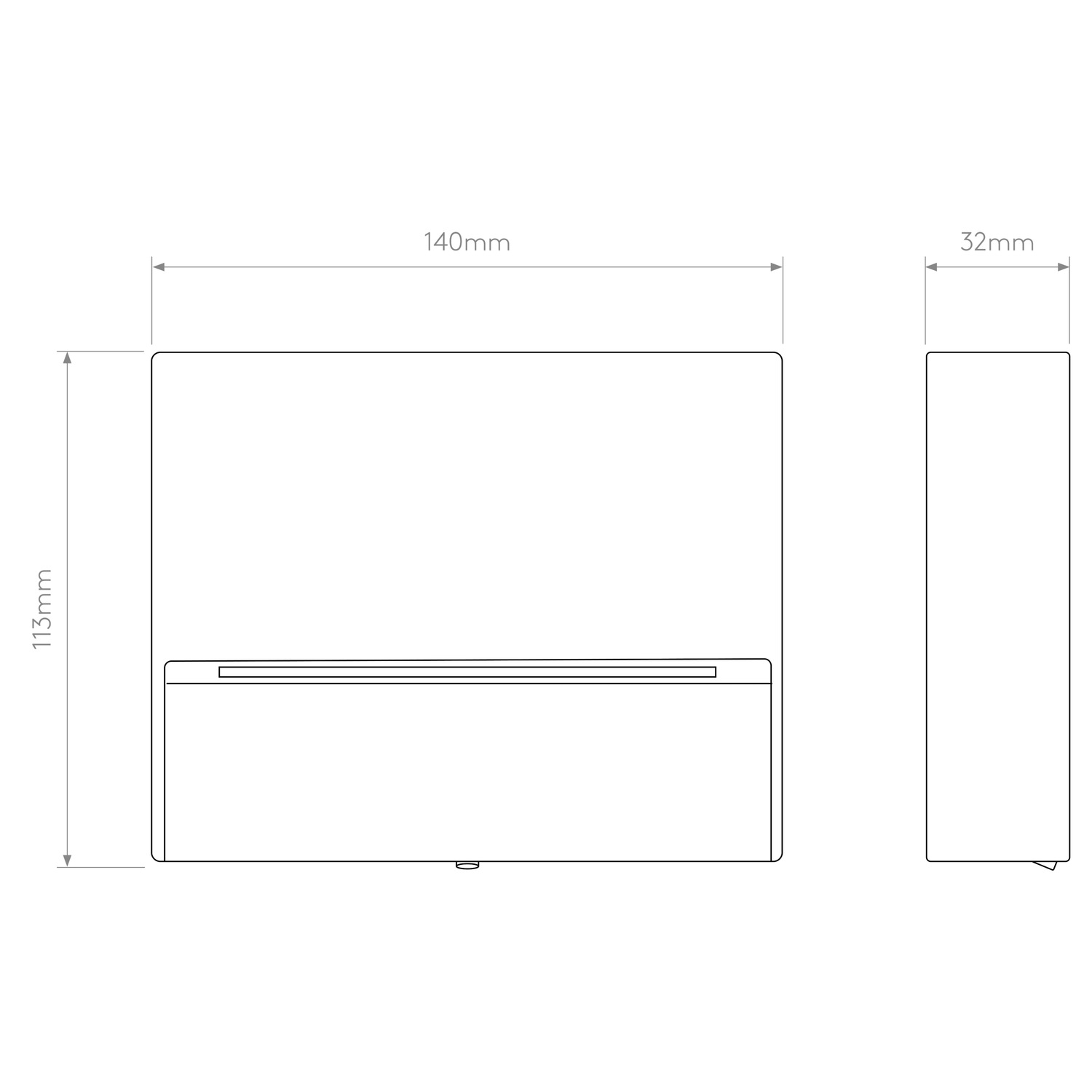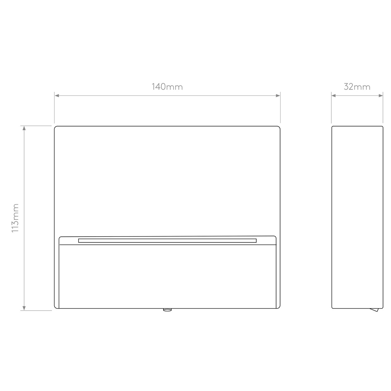 - Dimensions L x W x H: 32 x 140 x 113 mm