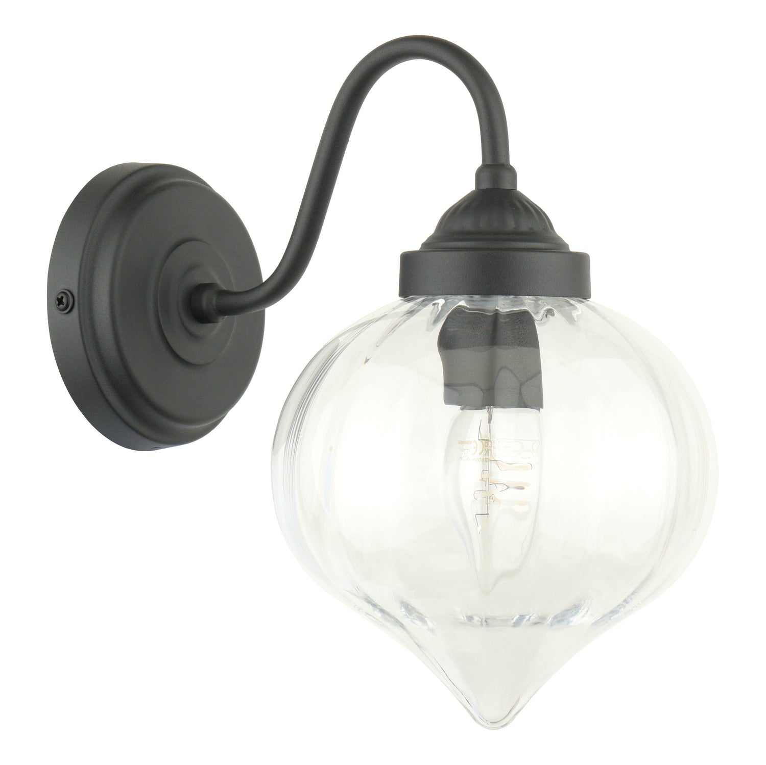 Laura Ashley Whitham Outdoor Wall Light Matt Black and Ribbed Glass IP44