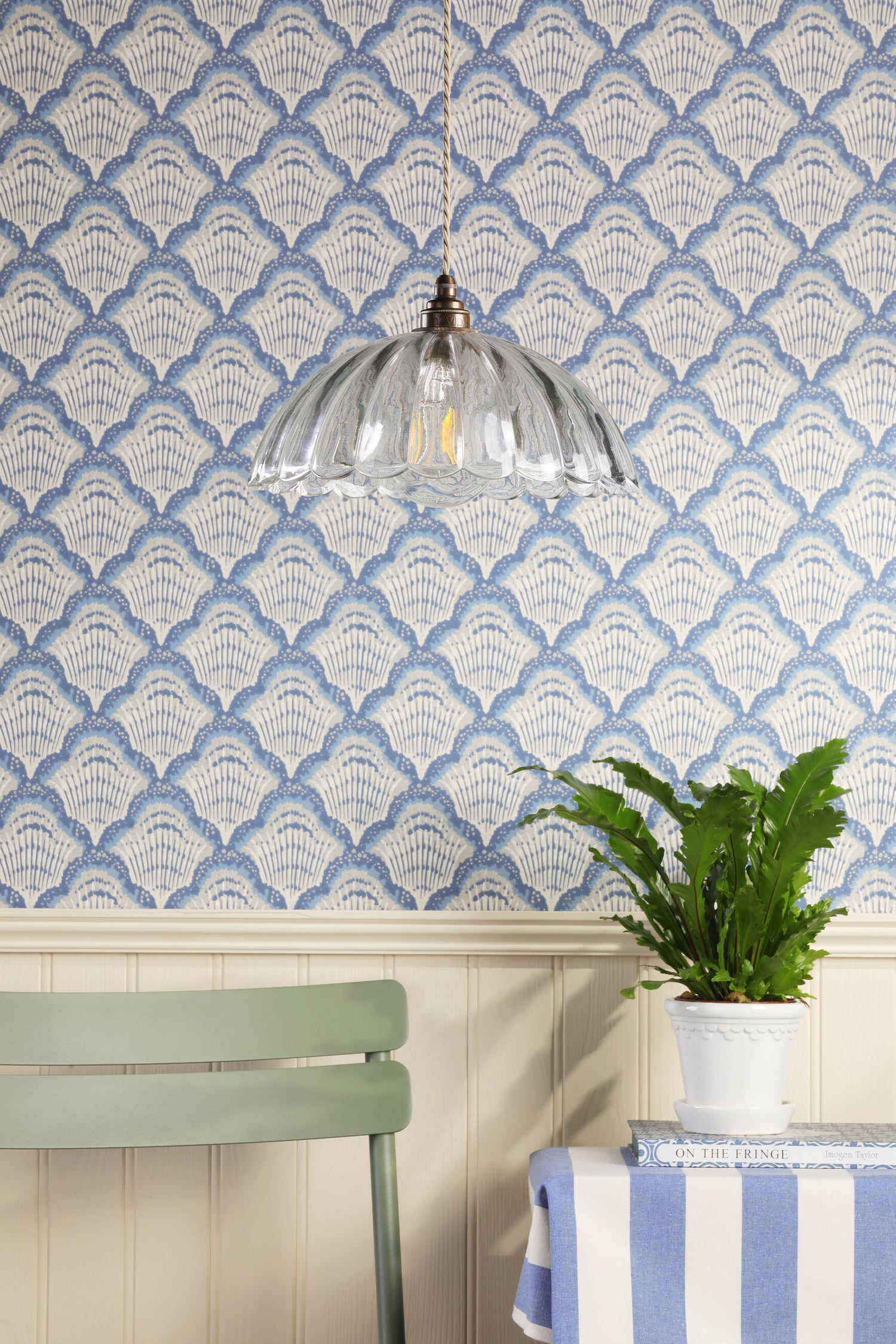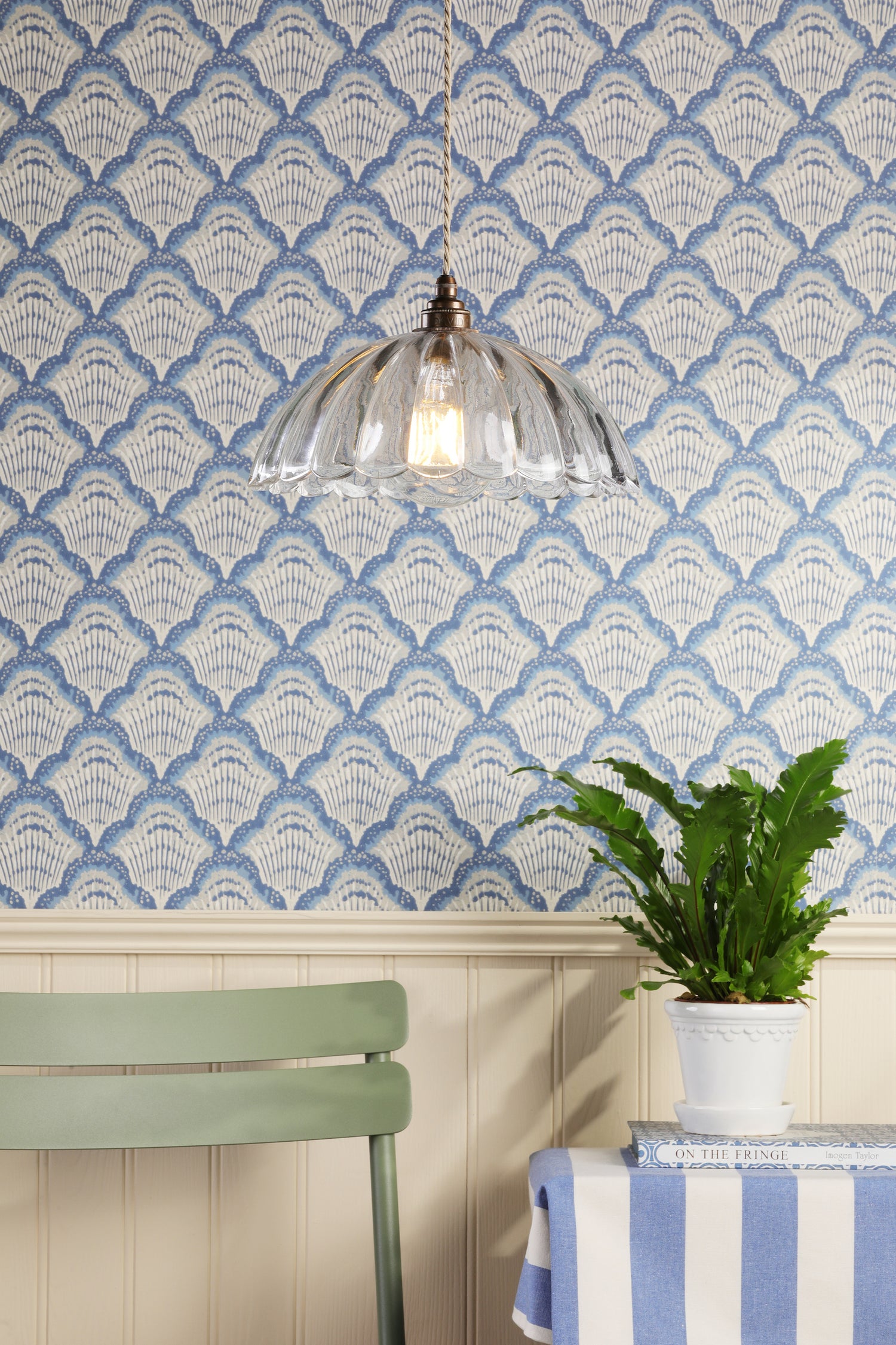 David Hunt Mabel Pendant Ribbed Glass and Antique Brass