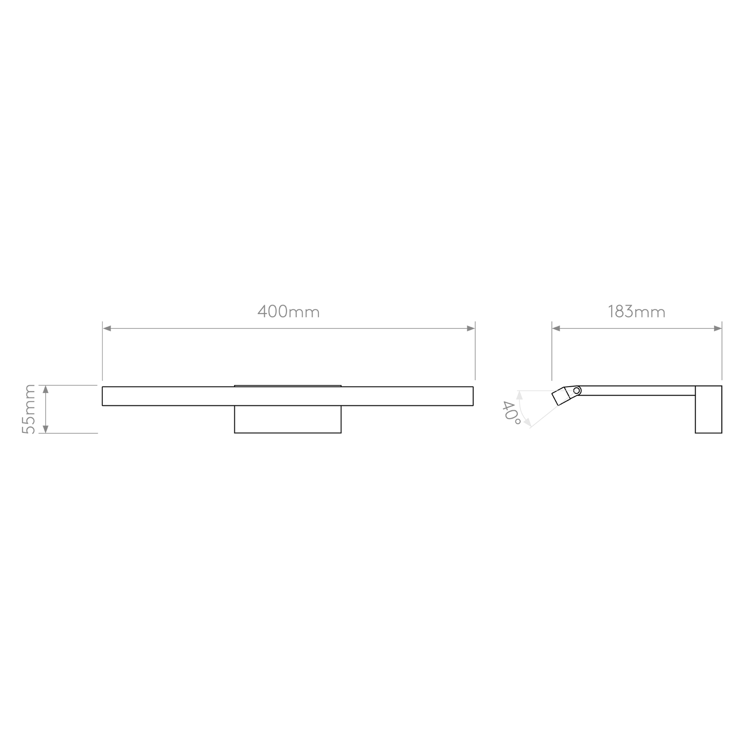 - Dimensions L x W x H: 183 x 400 x 55 mm