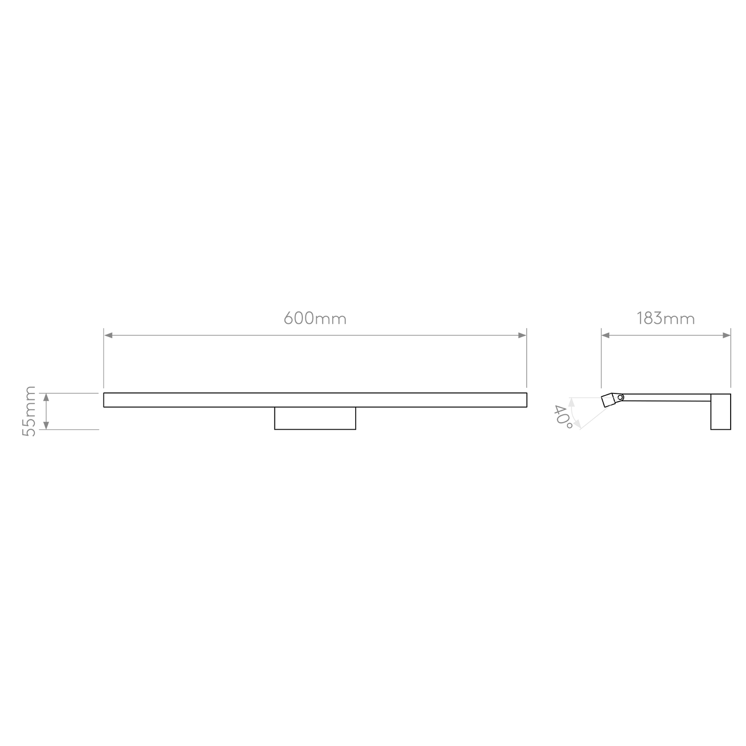 - Dimensions L x W x H: 183 x 600 x 55 mm
