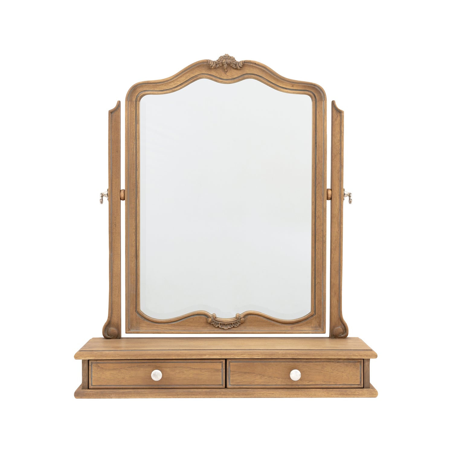 This charming dressing table mirror combines classic craftsmanship with practical functionality. Featuring hand-carved details, traditional dovetail joints, and twin drawers with silver handles, it’s both beautiful and practical. The adjustable tilt frame and bevelled mirror make it a standout piece for any dressing area.