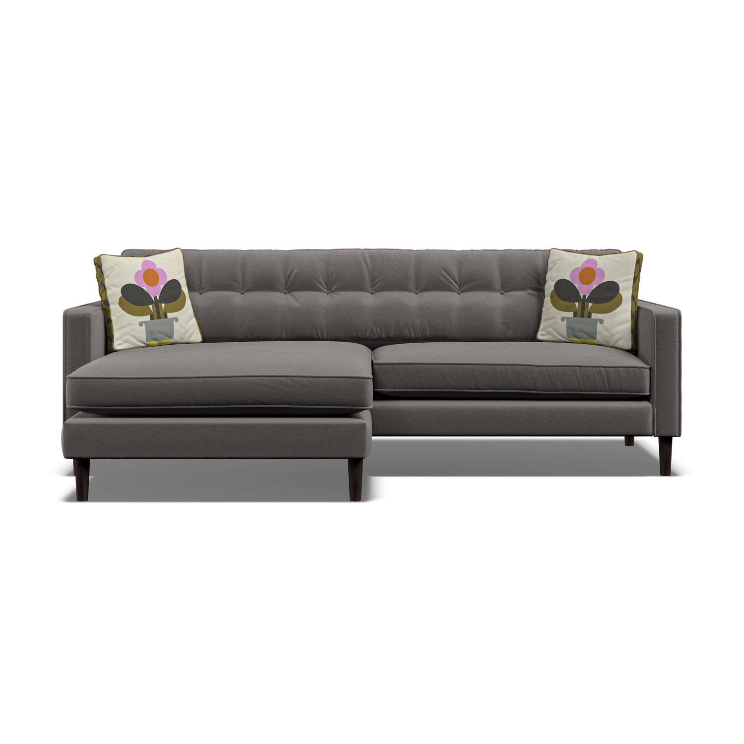 Simple lines and full width buttoned back cushions make Ebben a timeless classic with maximum Mid Century style appeal, perfectly proportioned arms and comfortable foam seat pads are outlined with piping for a tailored look. This modern range is also available as a corner sofa and a neat button top footstool, all have turned, tapered solid timber feet. The Ebben range puts your calm, cool, creative style on display in your living space.