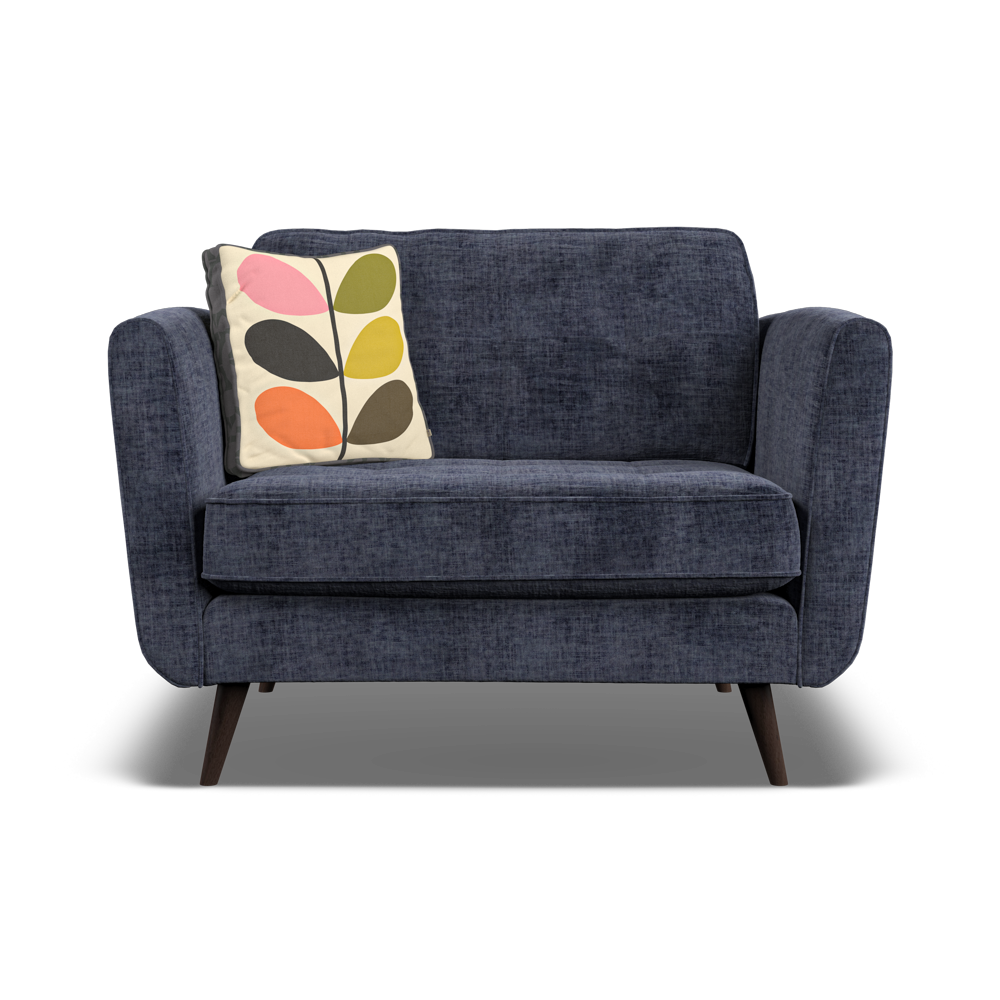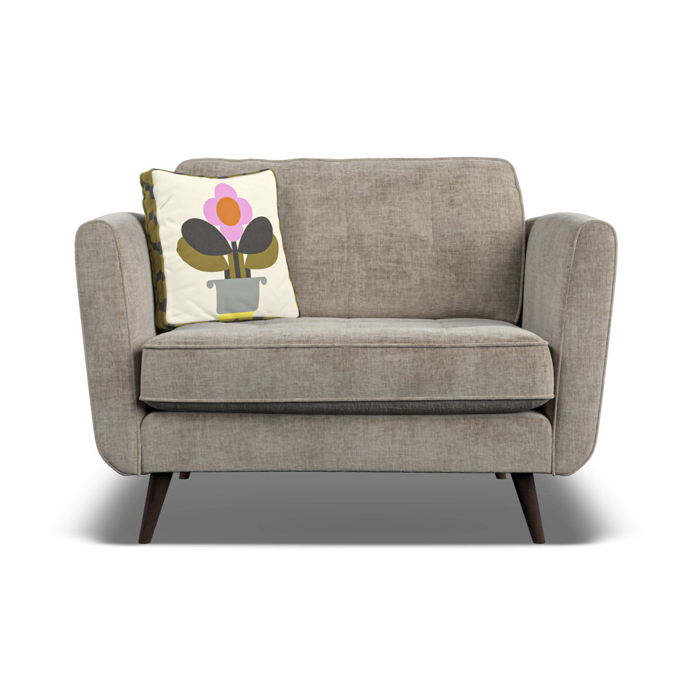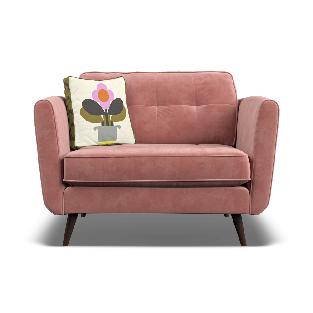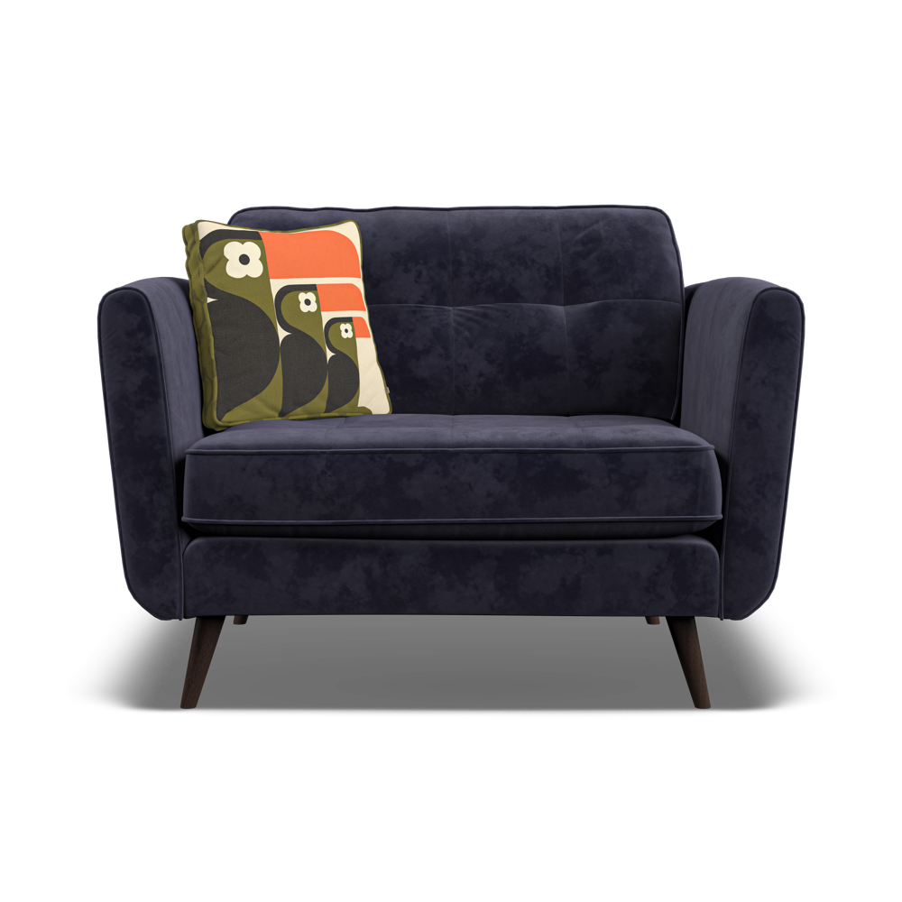 The Ivy Snuggler Chair has clean retro lines with soft rounded arms. The seat and back cushions have been finished with an elegant square quilted surface design and perfectly piped seams. A perfect combination of contemporary design and retro style. The feet colour can either be finished in Weathered Oak or Walnut stain.