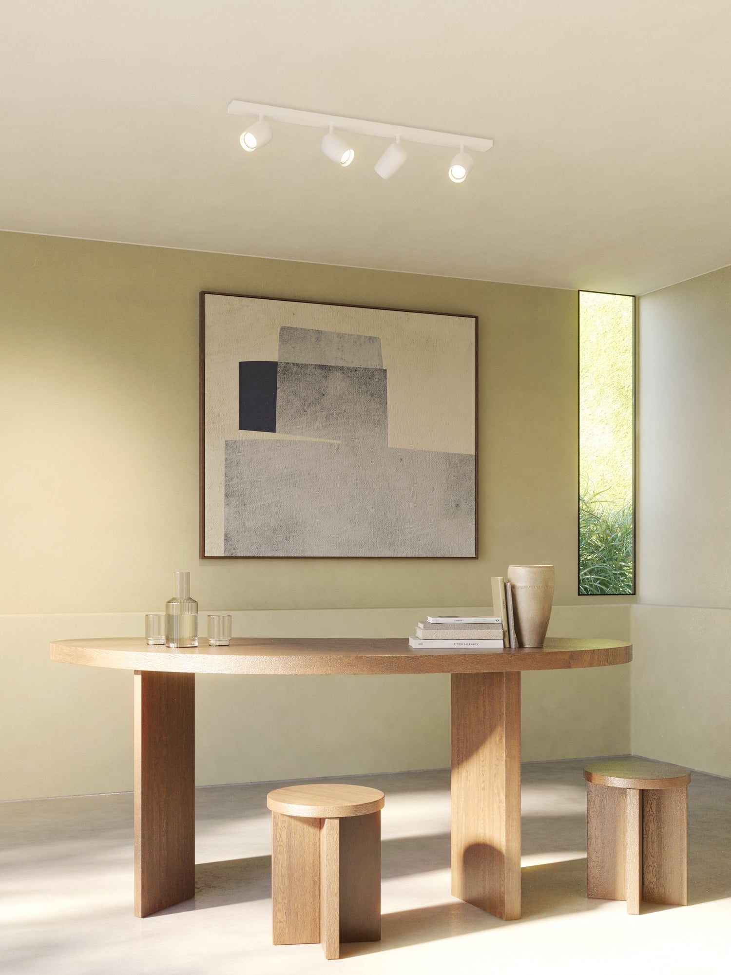 With its four curved spotlight heads arranged along a straight bar, Koto is the perfect choice for adding functional, multidirectional spotlighting to your home. Thanks to its versatile design, Koto's four spotlights can be adjusted individually to focus the light output as desired, making it an ideal lighting solution for kitchens, workspaces, living rooms and beyond.