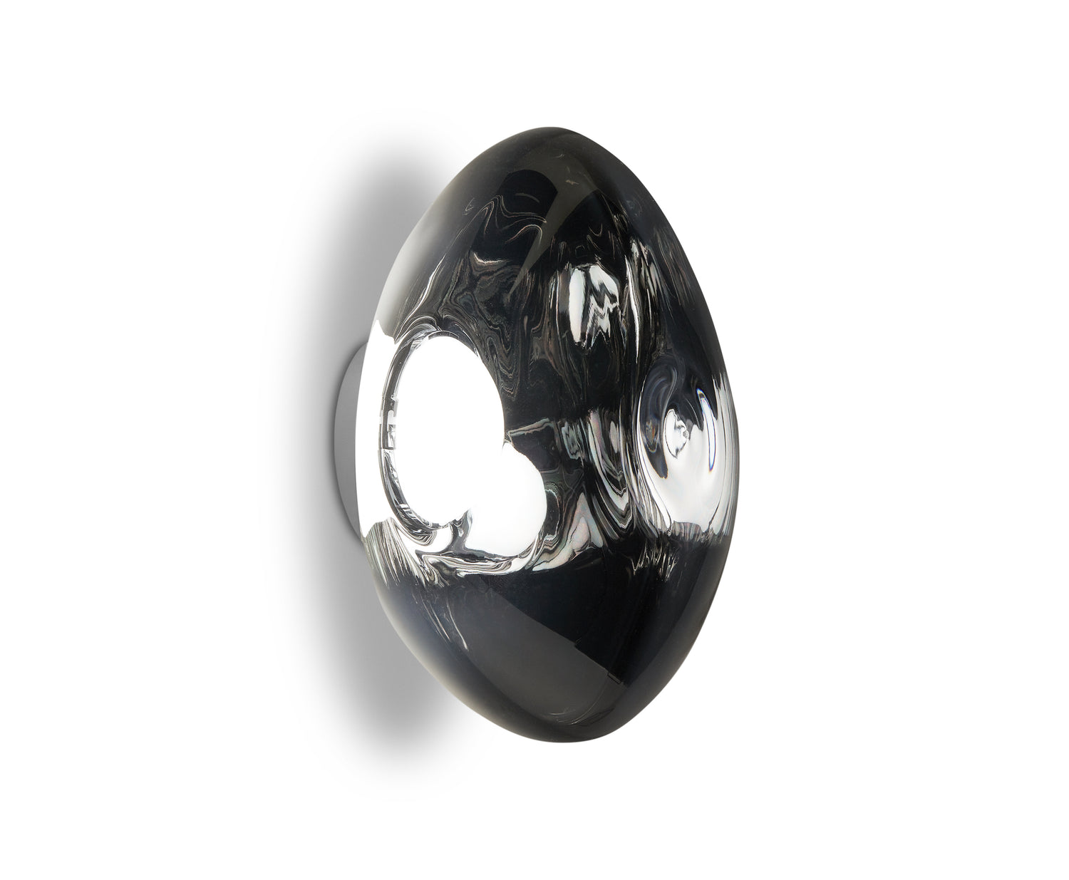 Squashed, squeezed, distorted and moulded into a flatter blob, Melt's extraordinary luminosity has found new applications on wall, ceiling or floor. With its instantly recognisable metallised effect, this latest evolution of Melt is now destined to be mounted on any surface. Truly there is now a Melt for every occasion. Available in Gold, Chrome, Copper or Smoke.