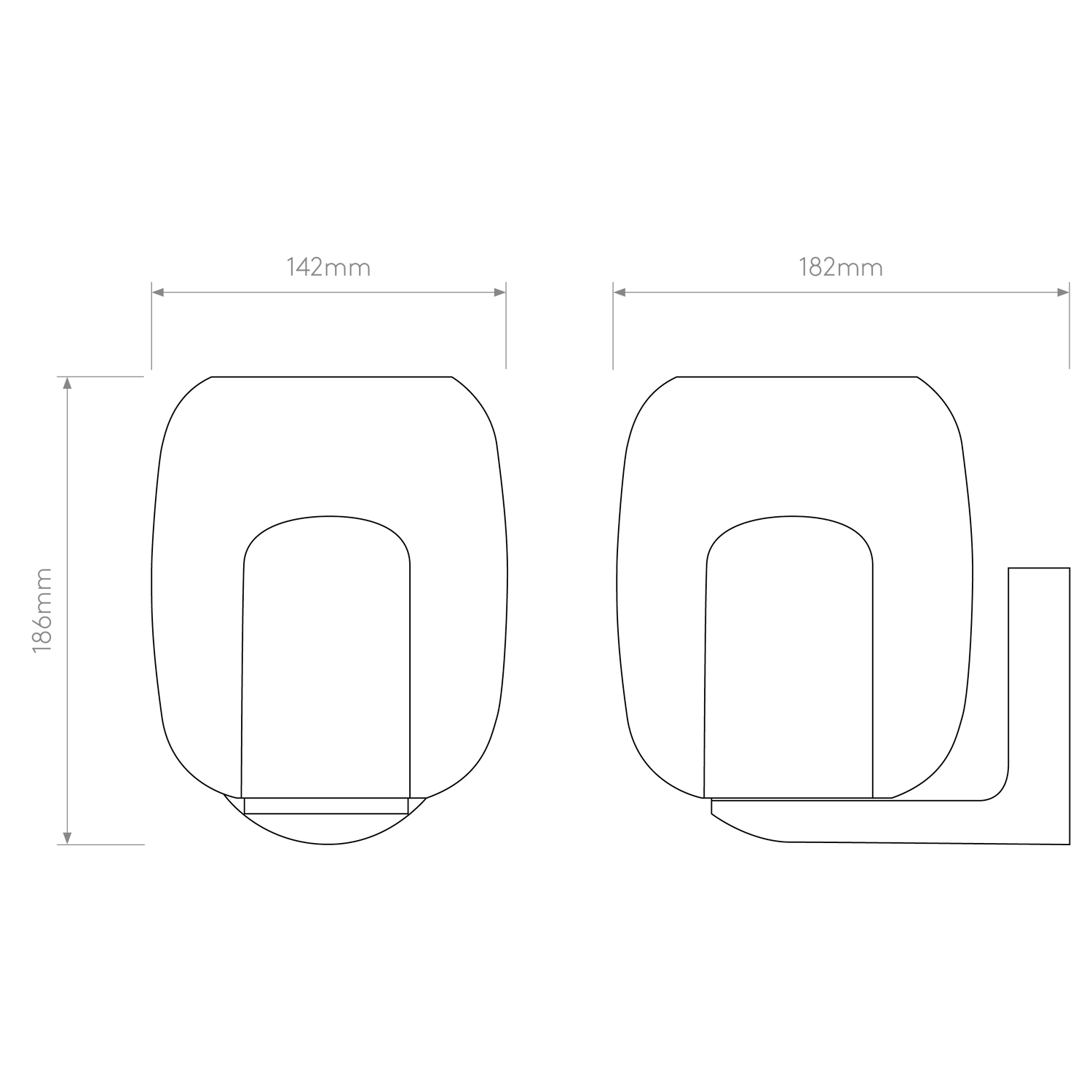 - Dimensions L x W x H: 182 x 142 x 186 mm