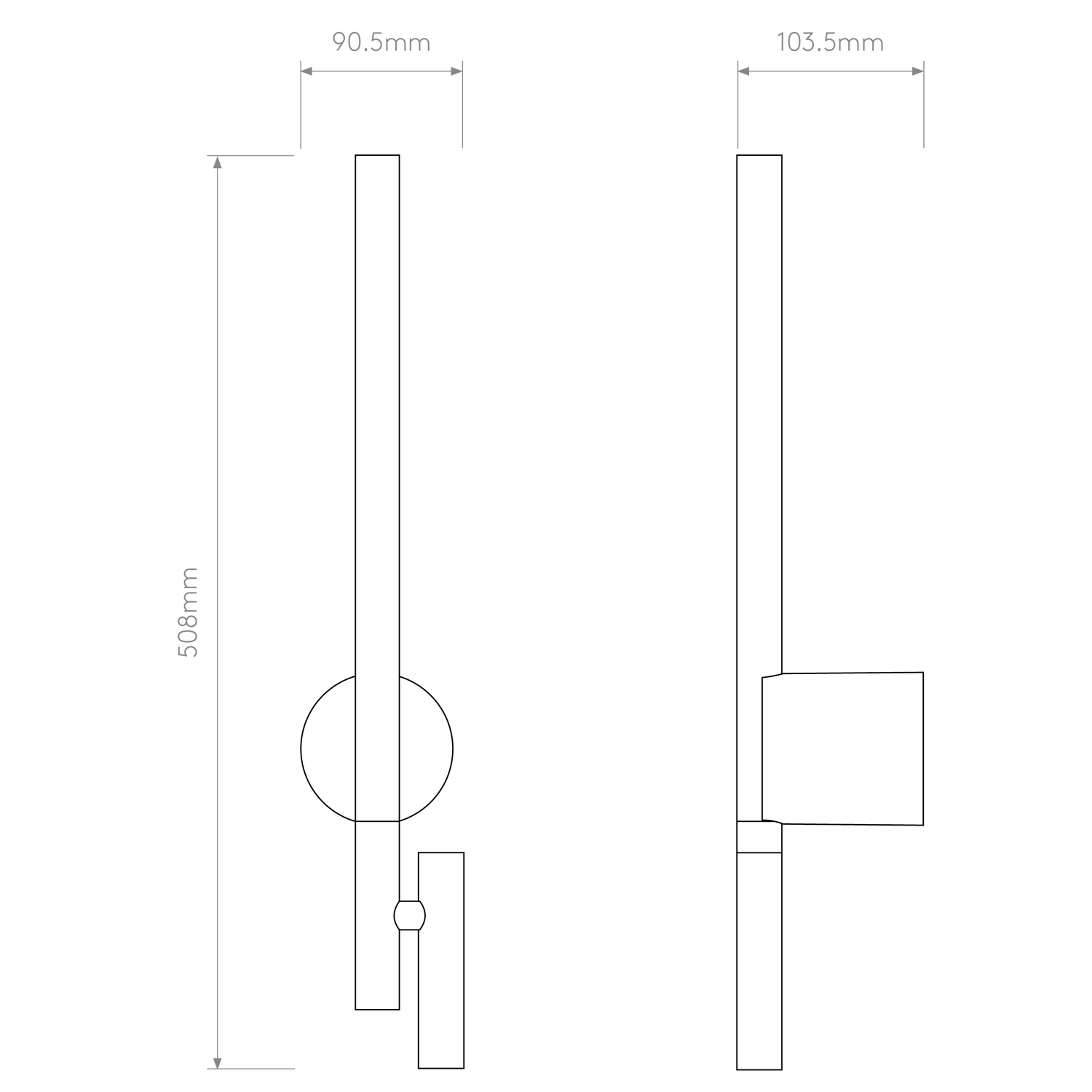 - Dimensions L x W x H: 103.5 x 90.5 x 508 mm