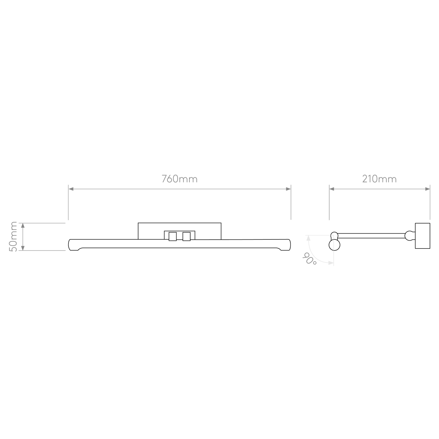 - Dimensions L x W x H: 210 x 760 x 50 mm