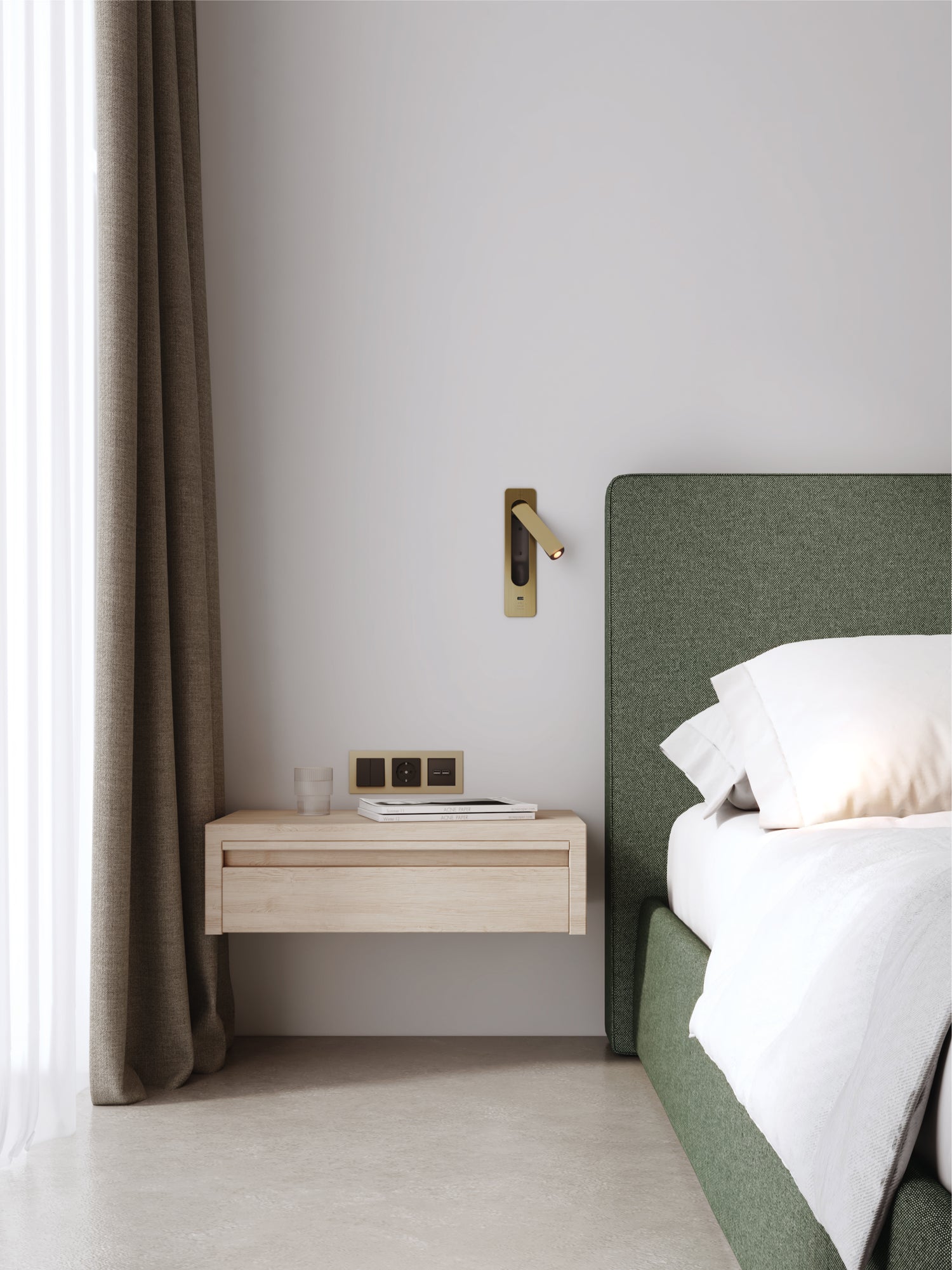 Featuring an automatic on-off switch with docking motion, the Keta ensures effortless operation, while engineered stops prevent abrasion and maintain perfect alignment between the head and cradle. Available in Matt Black, Matt Gold, or Bronze, this reading light combines refined aesthetics with practical functionality.