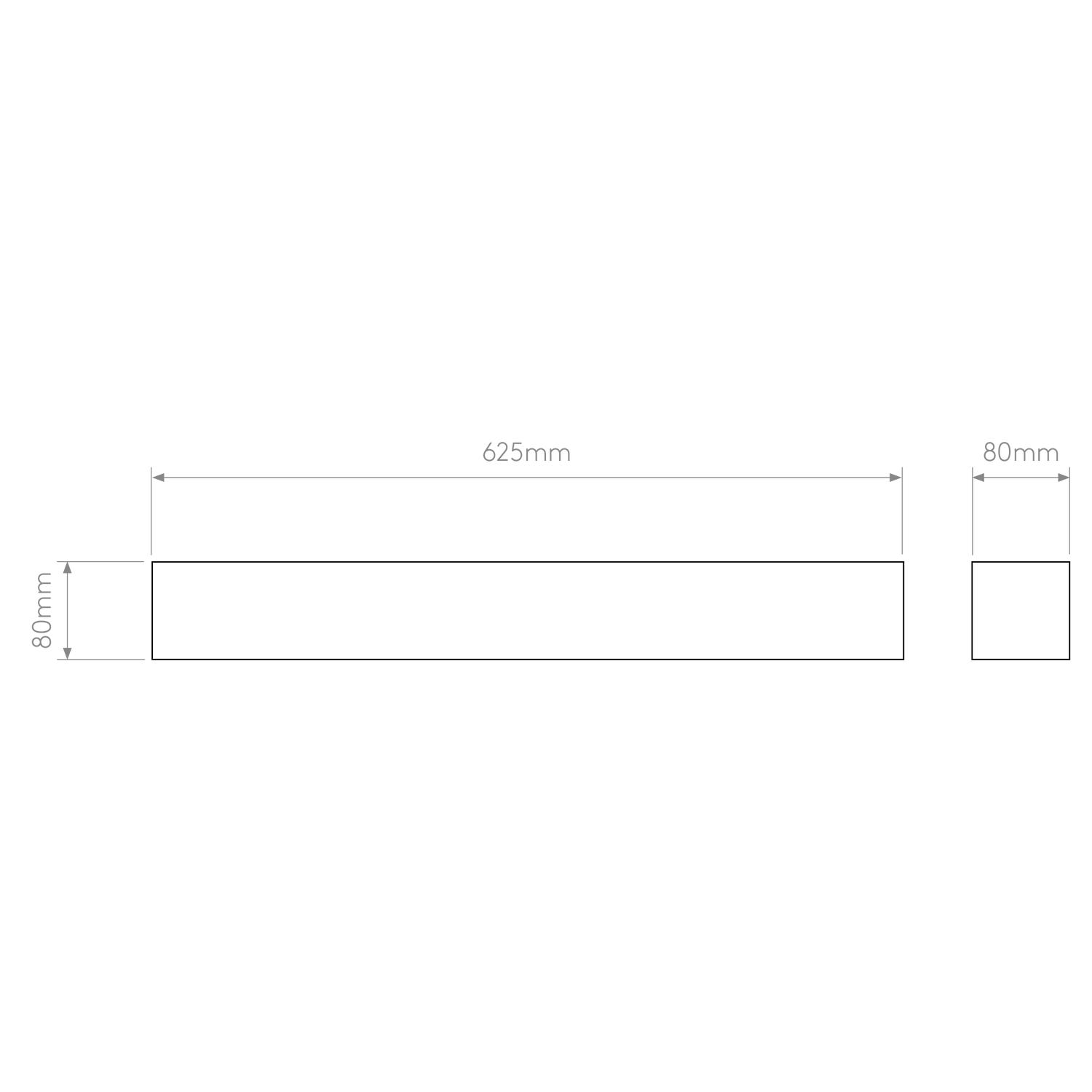 - Dimensions L x W x H: 80 x 625 x 80 mm