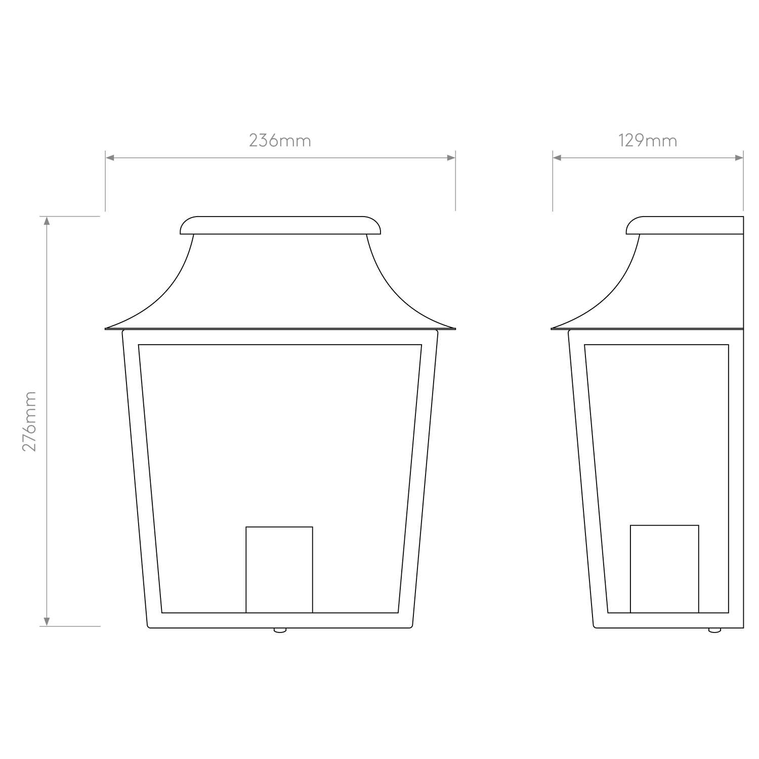 - Dimensions L x W x H: 129 x 236 x 276 mm
