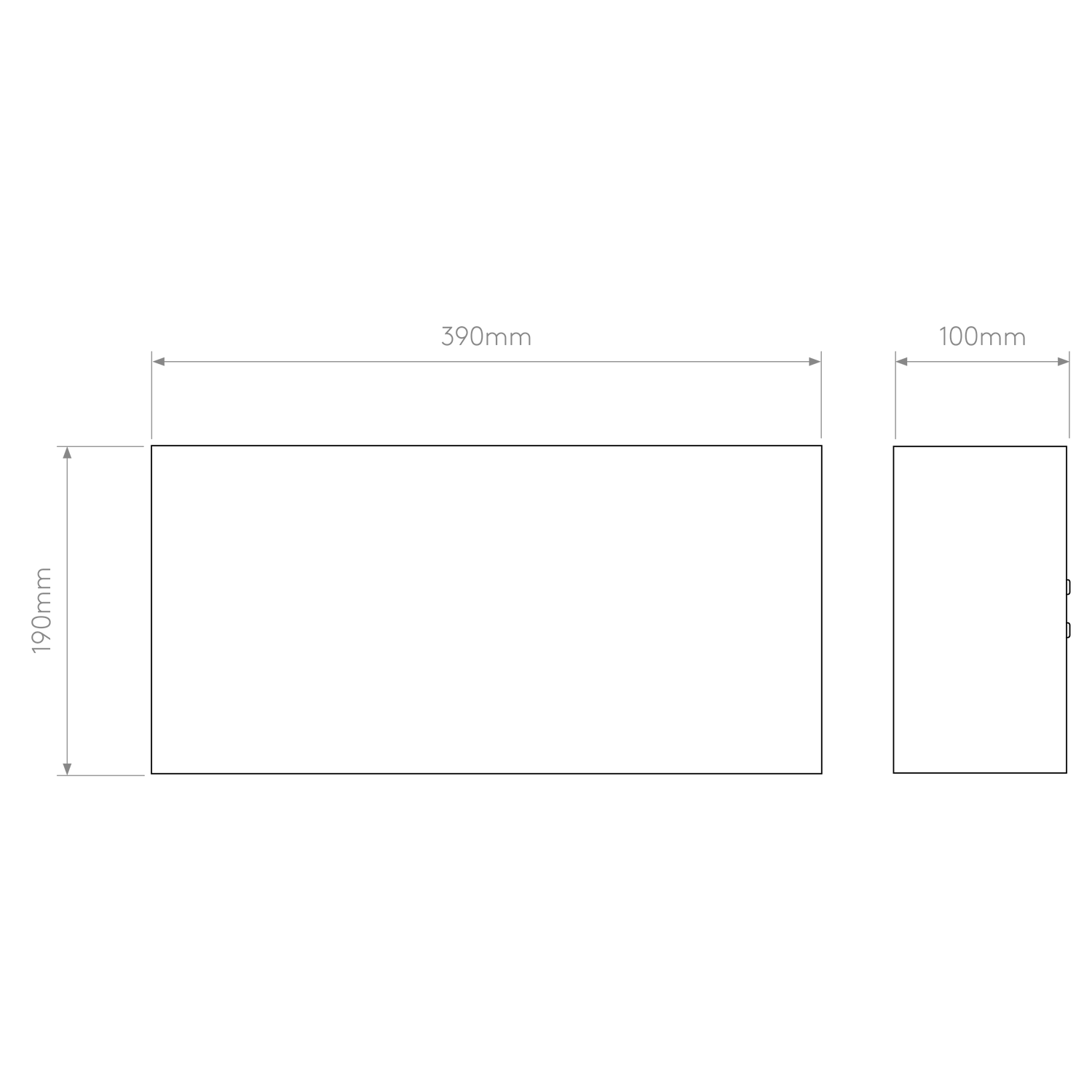 - Dimensions L x W x H: 100 x 390 x 190 mm